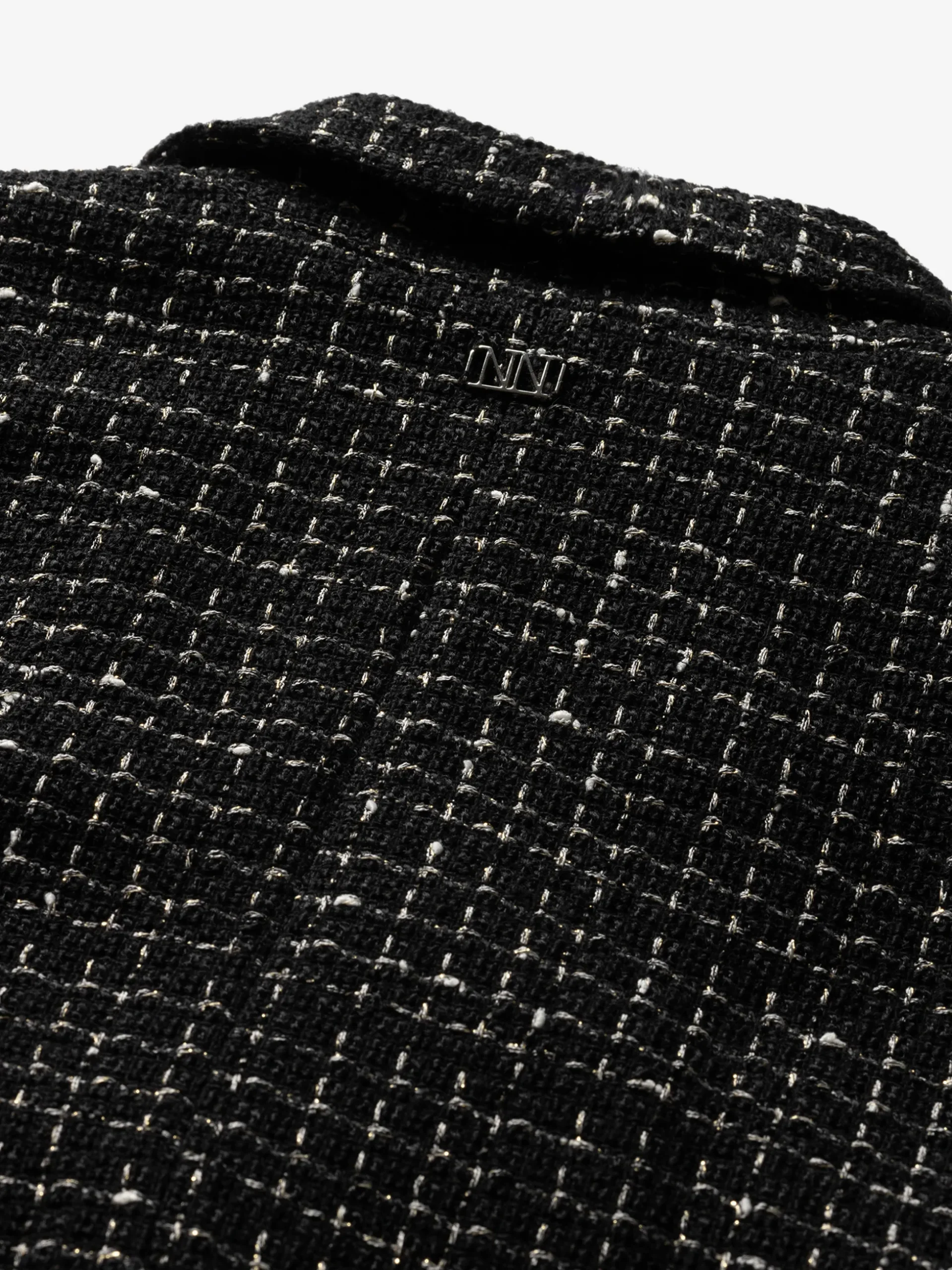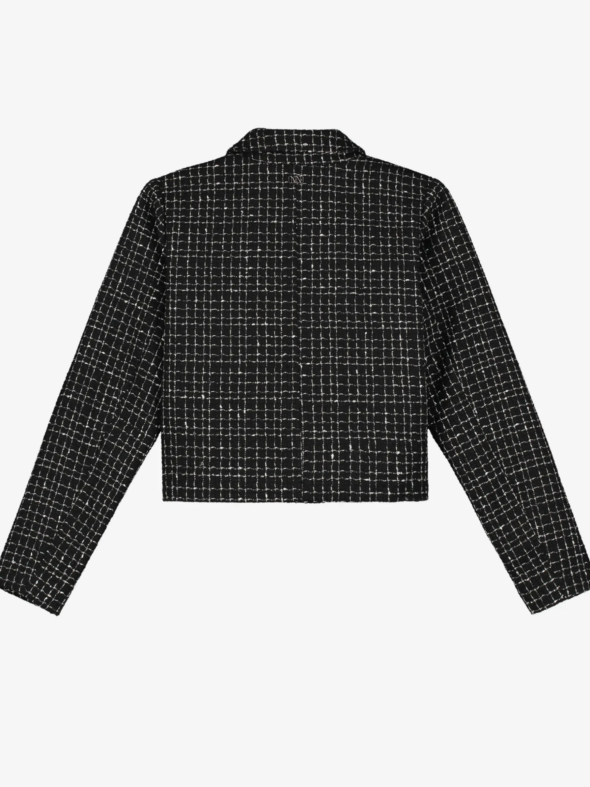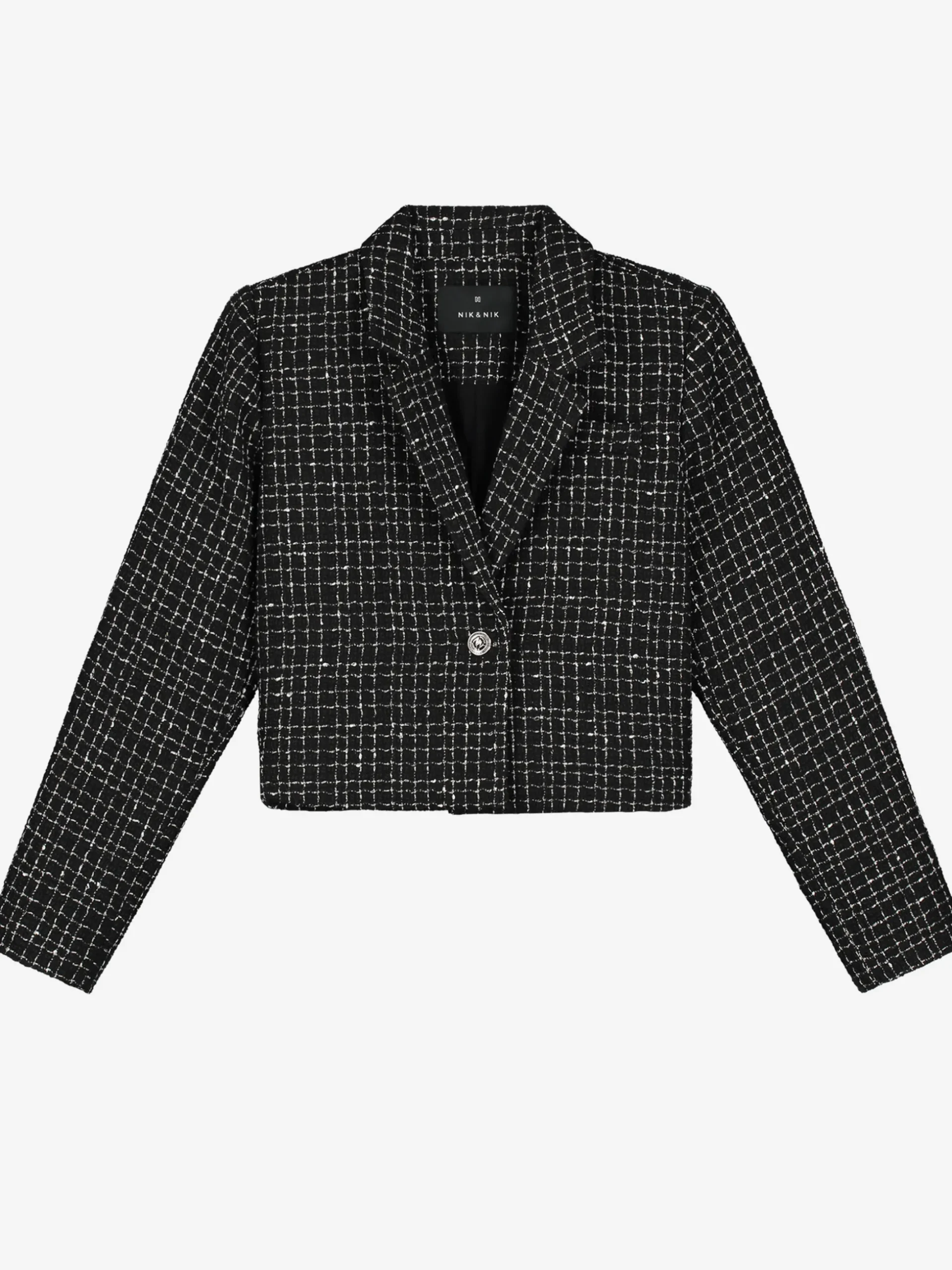 Cropped blazer met pied-de-poule patroon, reverskraag en een knoopsluiting.