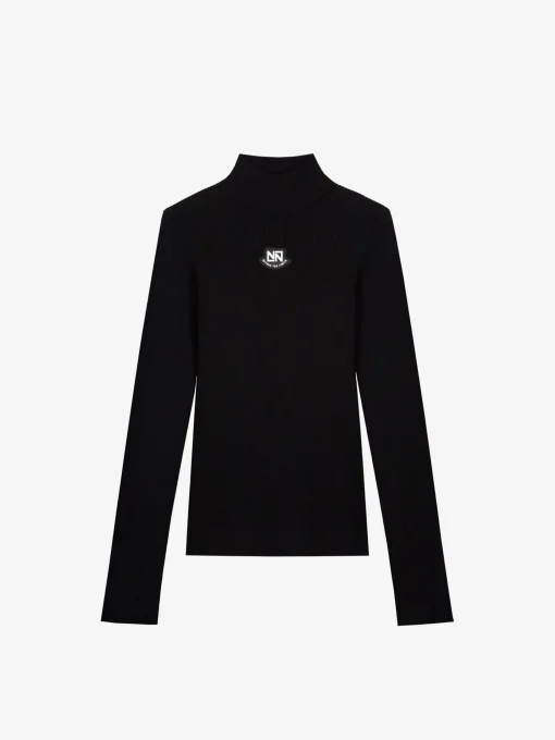 Ski pully van rib stof met een col en een subtiel logo. Depully heeft een aansluitende pasvorm en veel stretch.