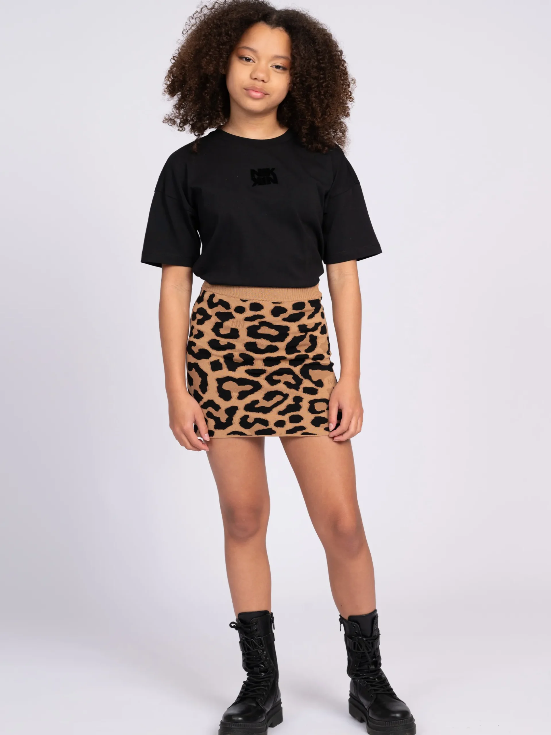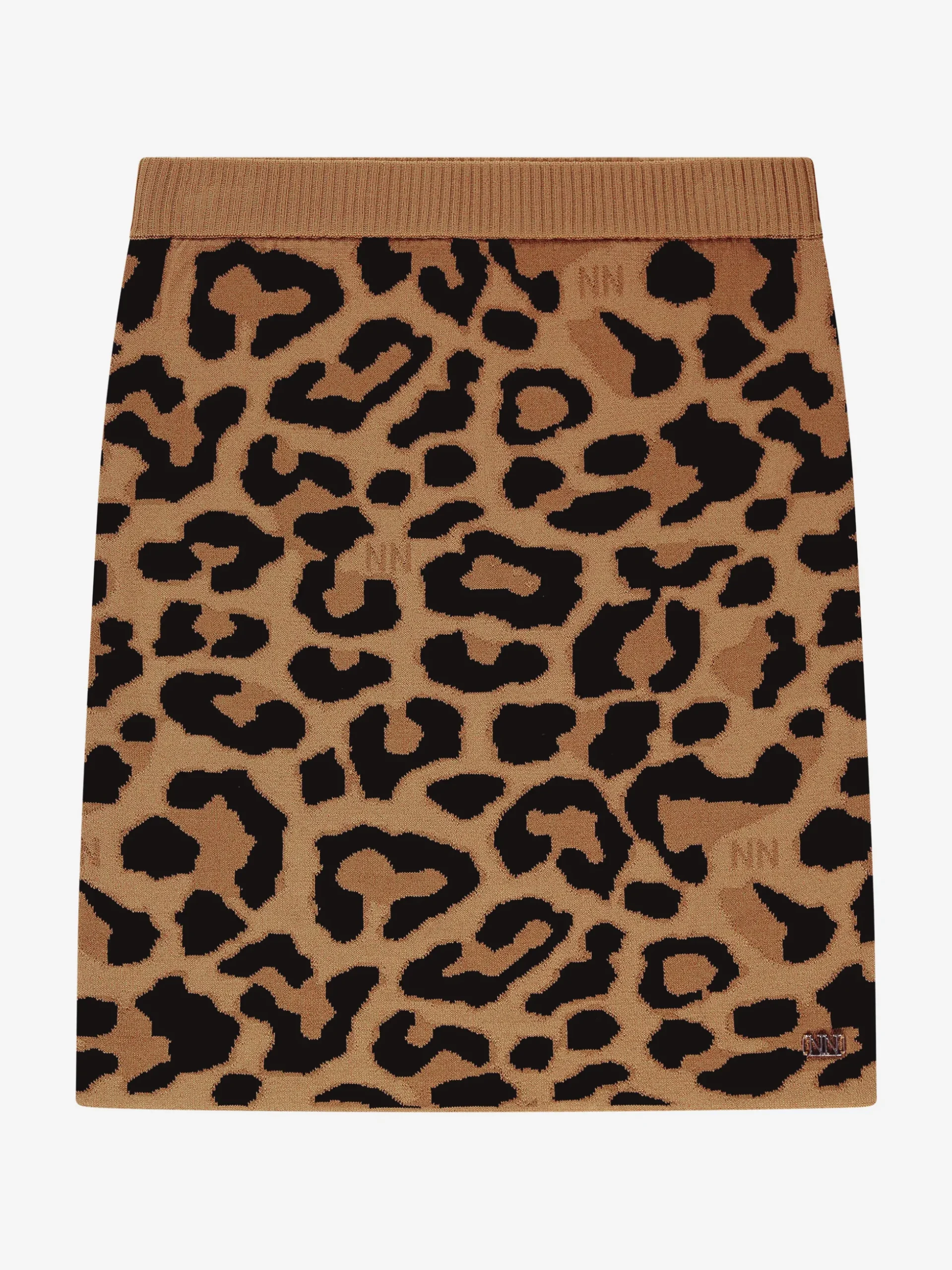 Korte rok met een aansluitende pasvorm en een panterprint. De rok heeft een subtiel N&N logo en stretch.