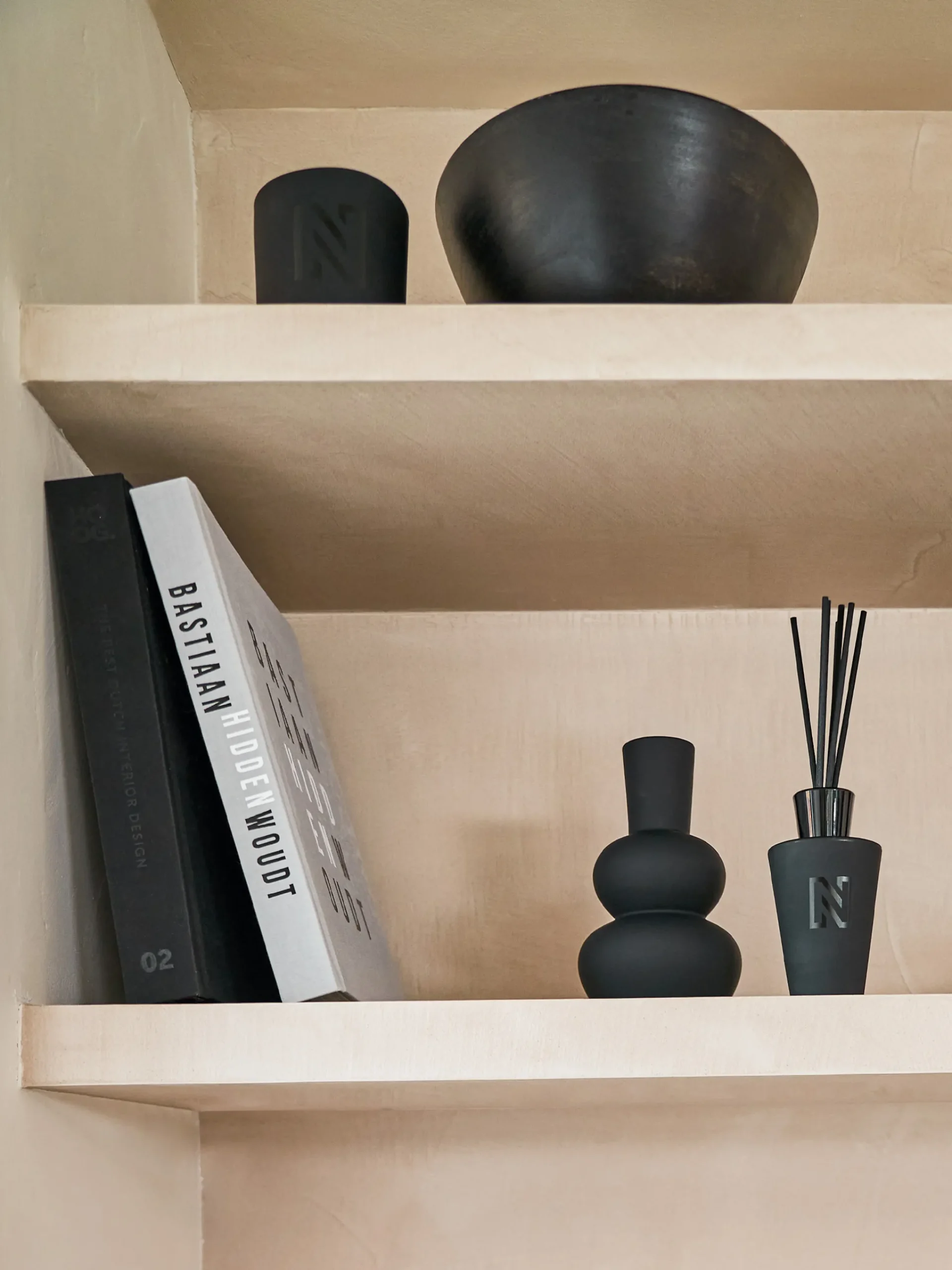 Verwijder de kraag en de plastic plug. Nadat de plastic plug is verwijderd, schroef je de zwarte kraag op de fles. Dompel de vijf stokjes in de vloeistof en laat ze de vloeistof opnemen voor enkele minuten. Draai de stokjes vervolgens om en plaats ze in de fles. Het label op de achterzijde is gemakkelijk te verwijderen d.m.v. een speciaal peel off label. Zorg ervoor dat je daarna je handen wast met water en zeep. Geniet van de houtachtige geur!