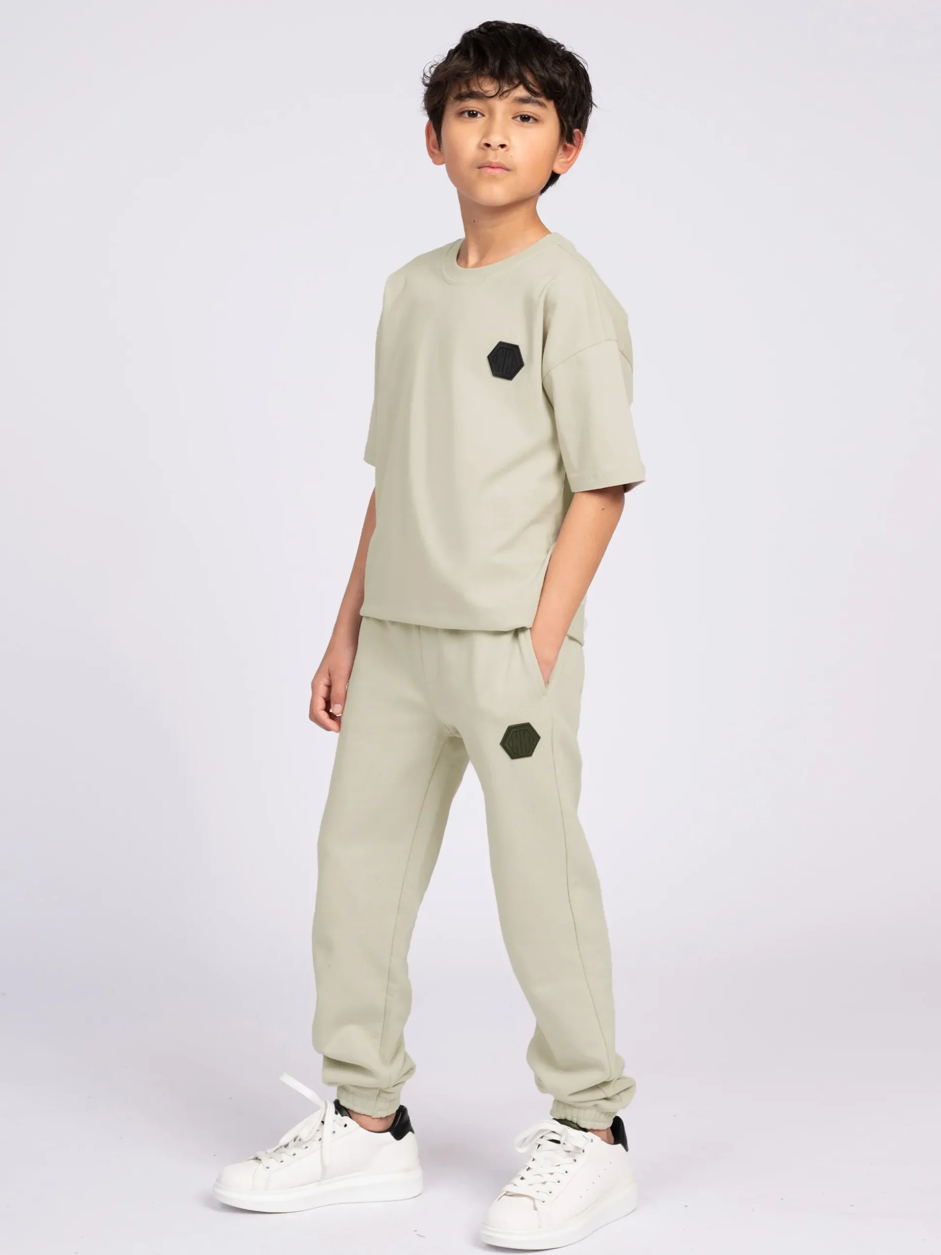 Losvallende joggingbroek met zakken, elastische tailleband en logo patch.