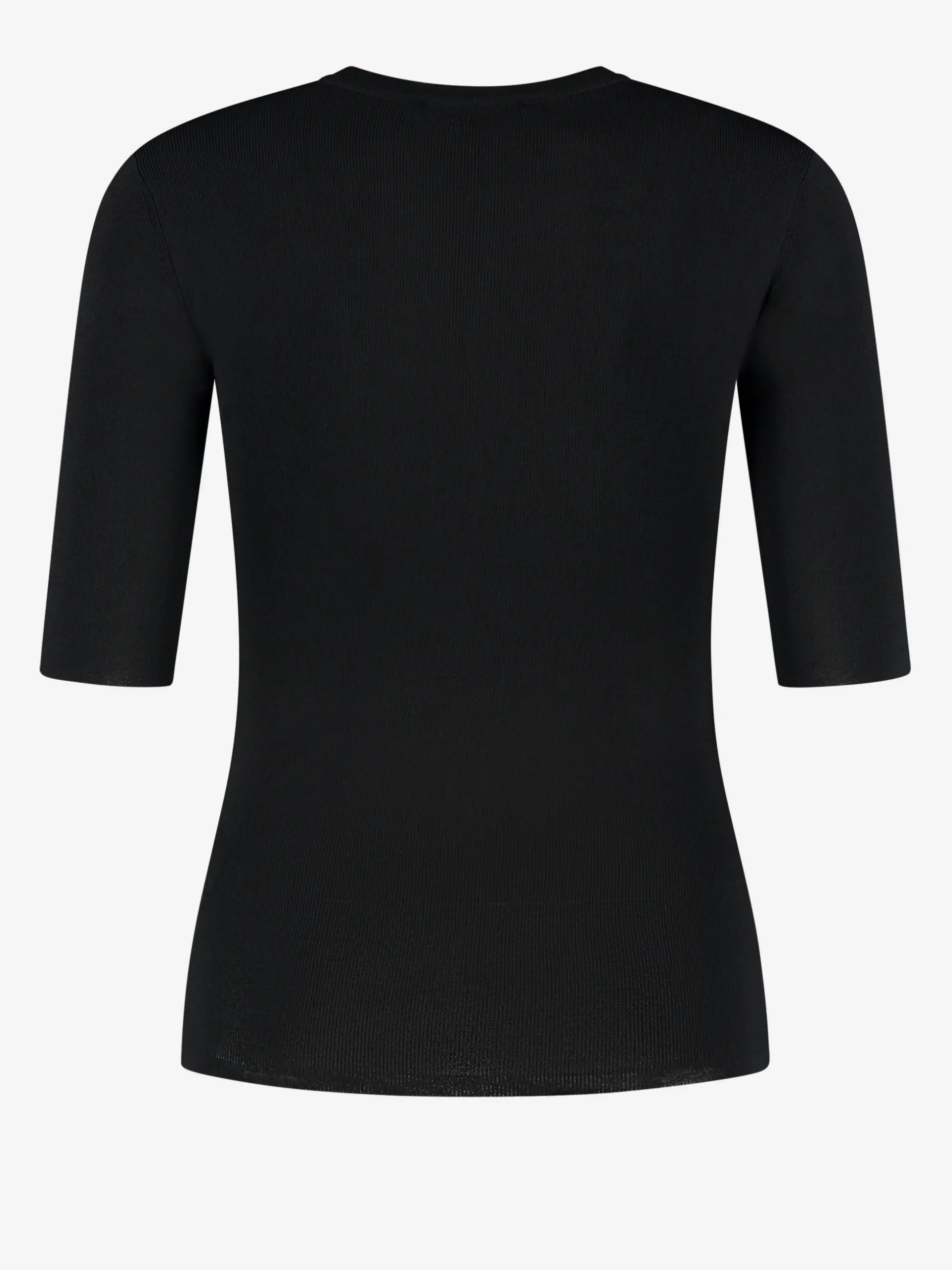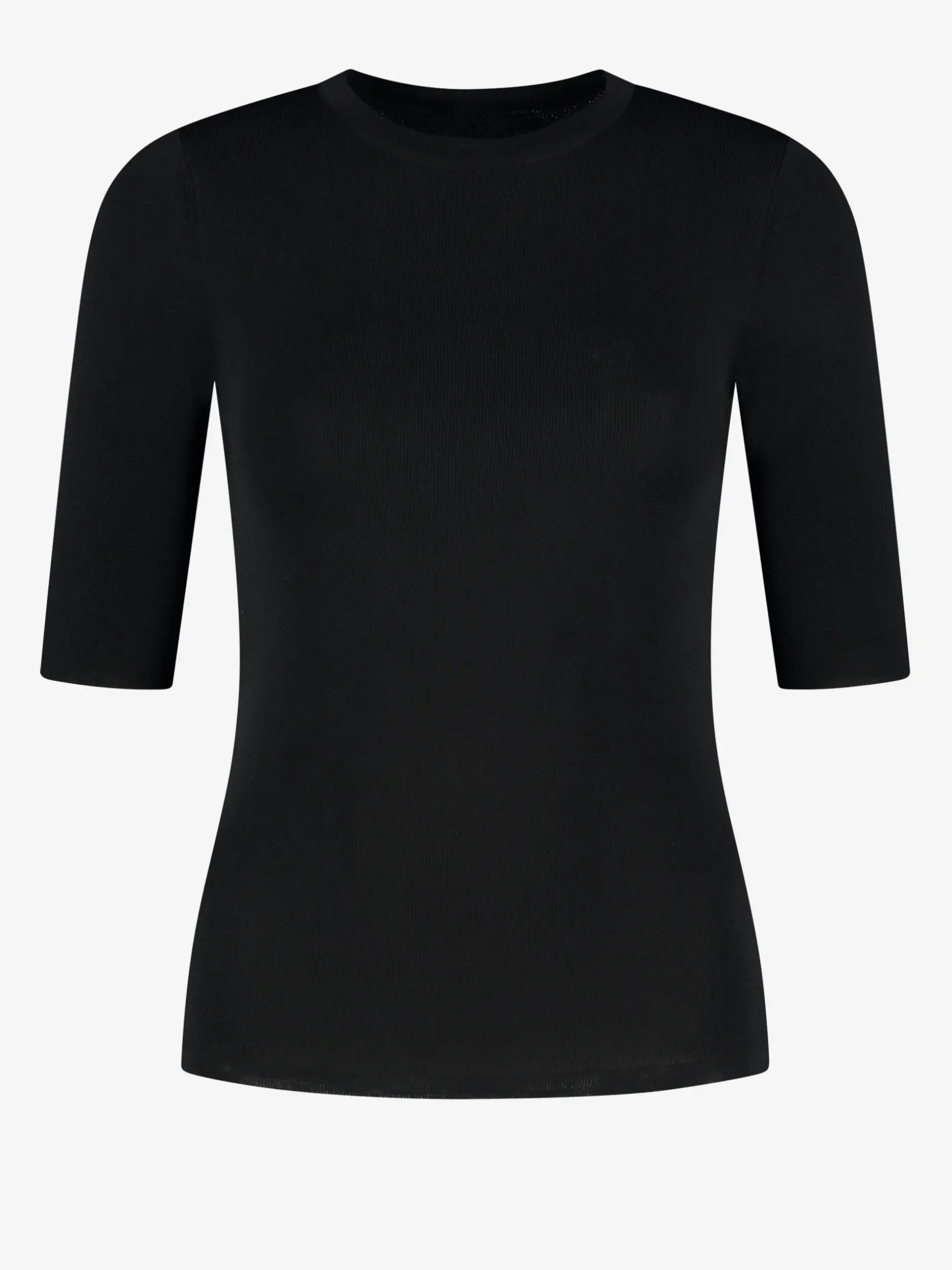 Een aansluitende top met driekwart mouwen en een rondehalslijn.