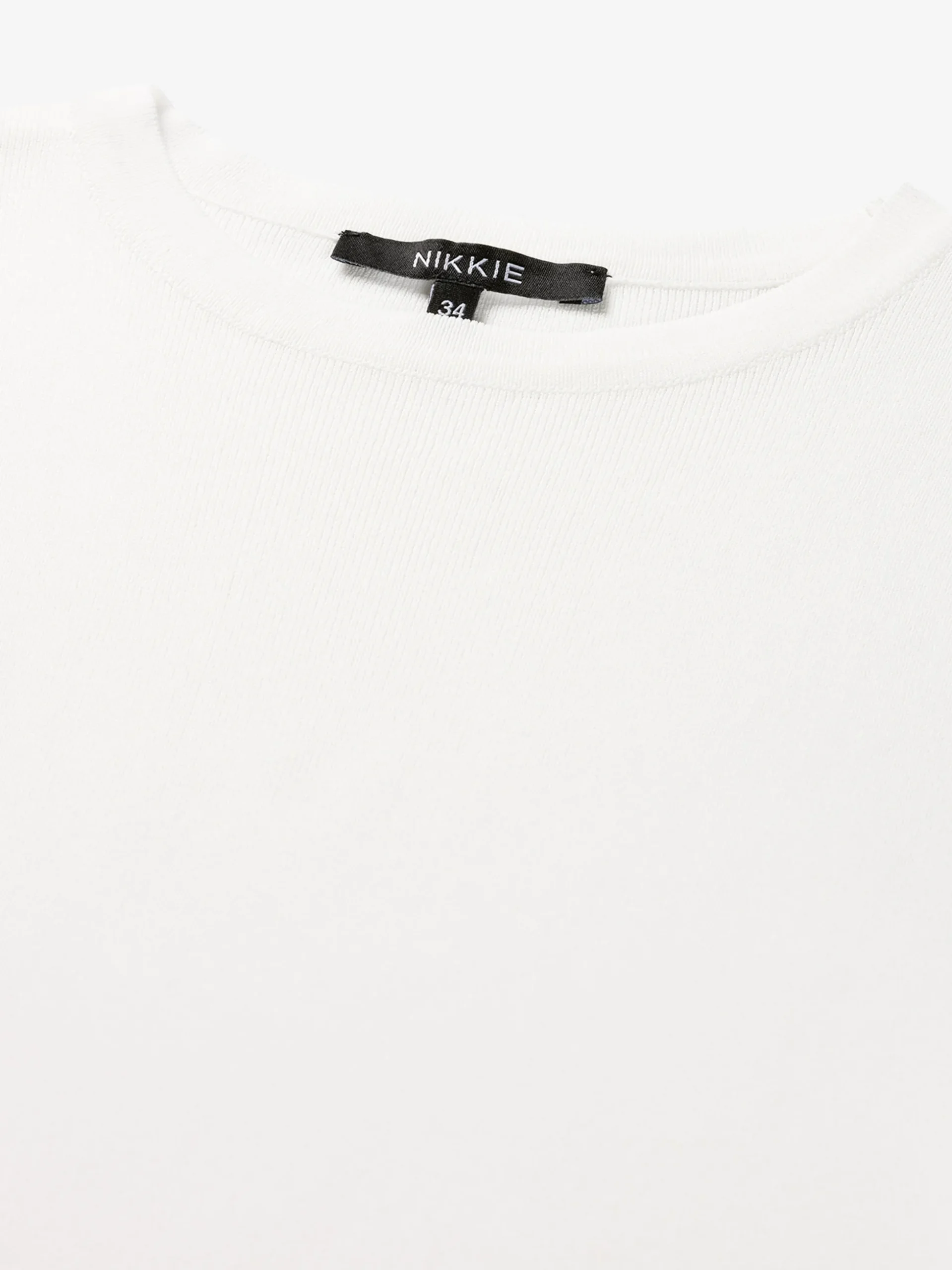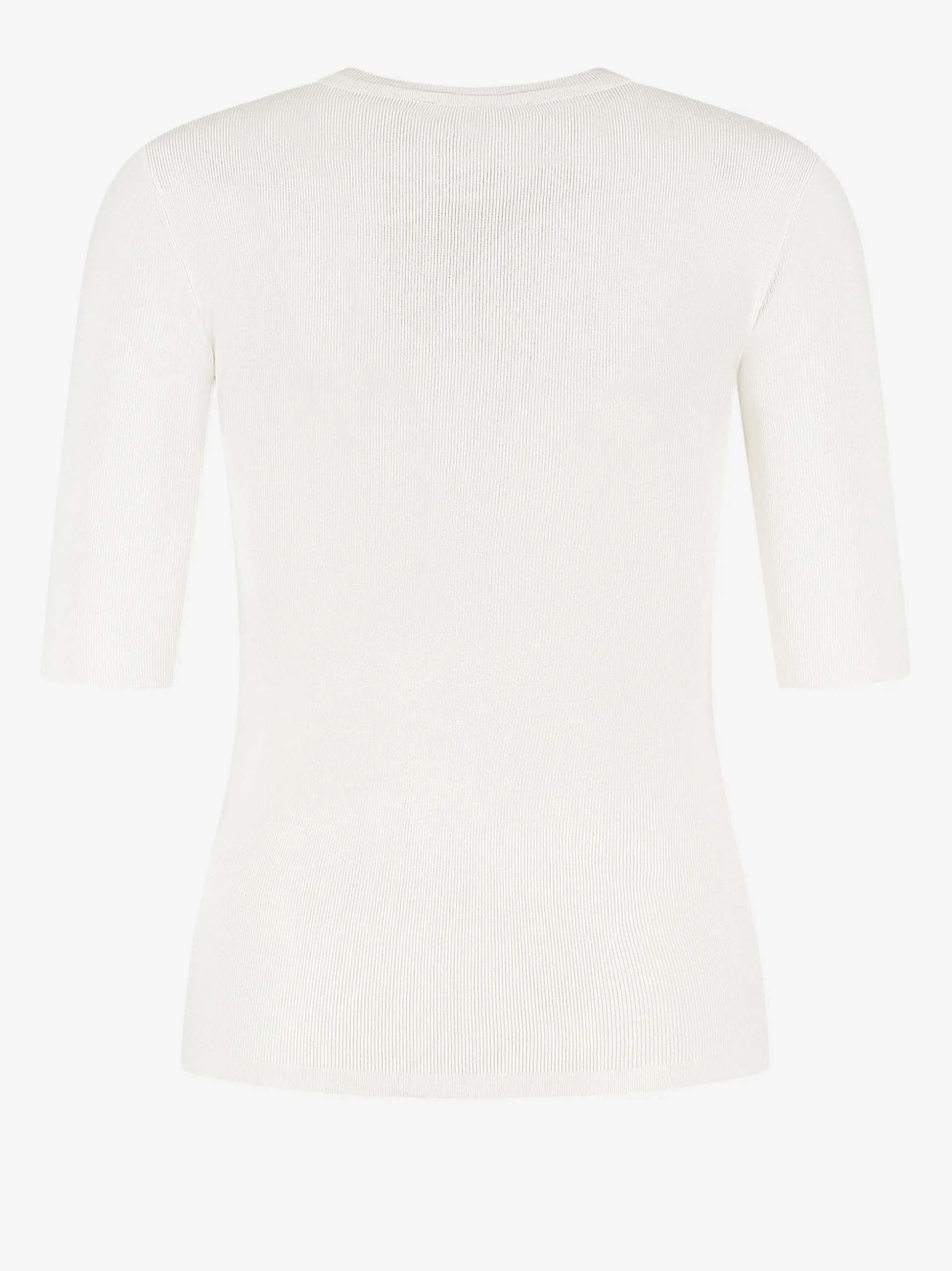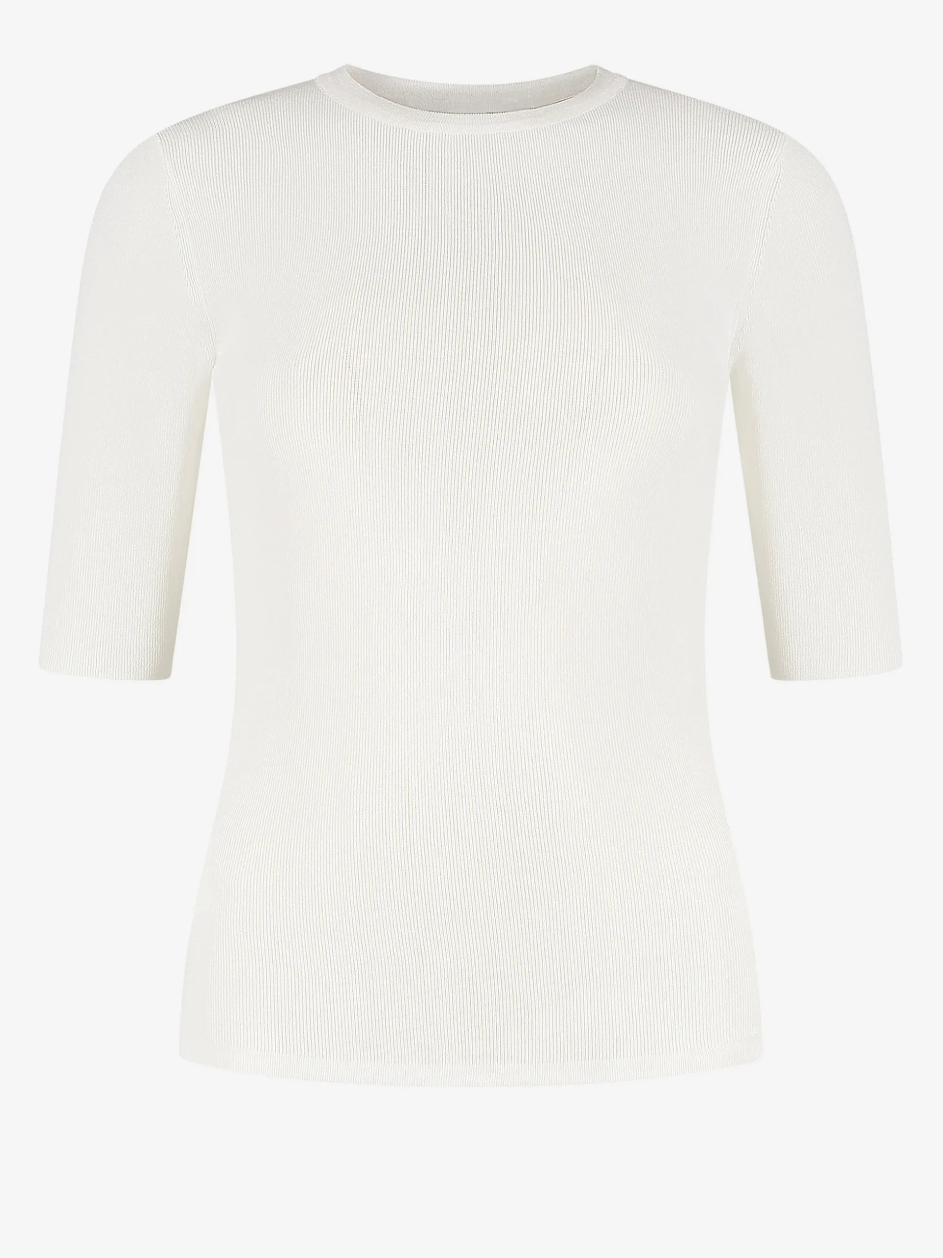 Een aansluitende top met driekwart mouwen en een rondehalslijn.