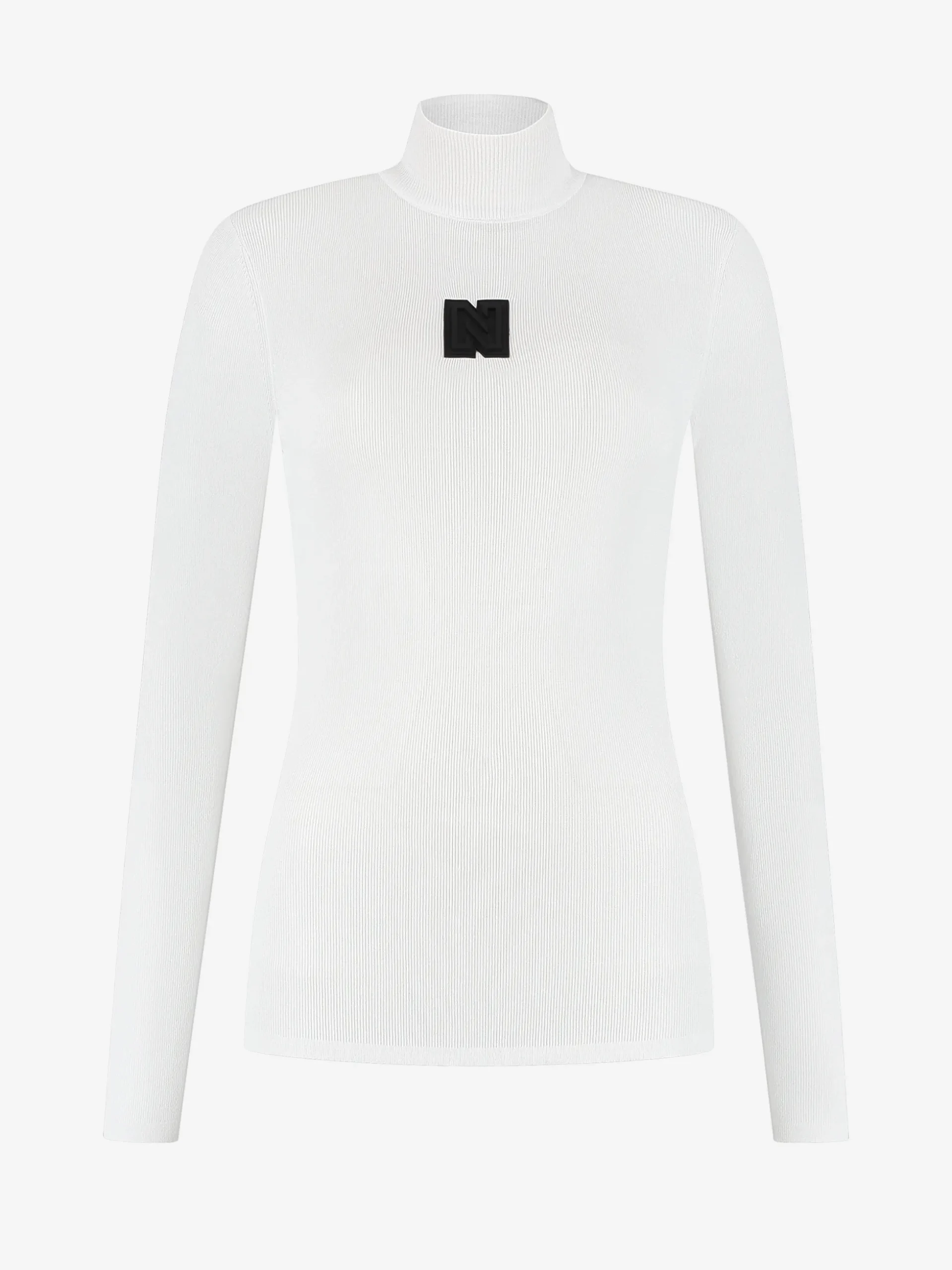 Aansluitende top met een N-logo patch, een hoge col enveel stretch.