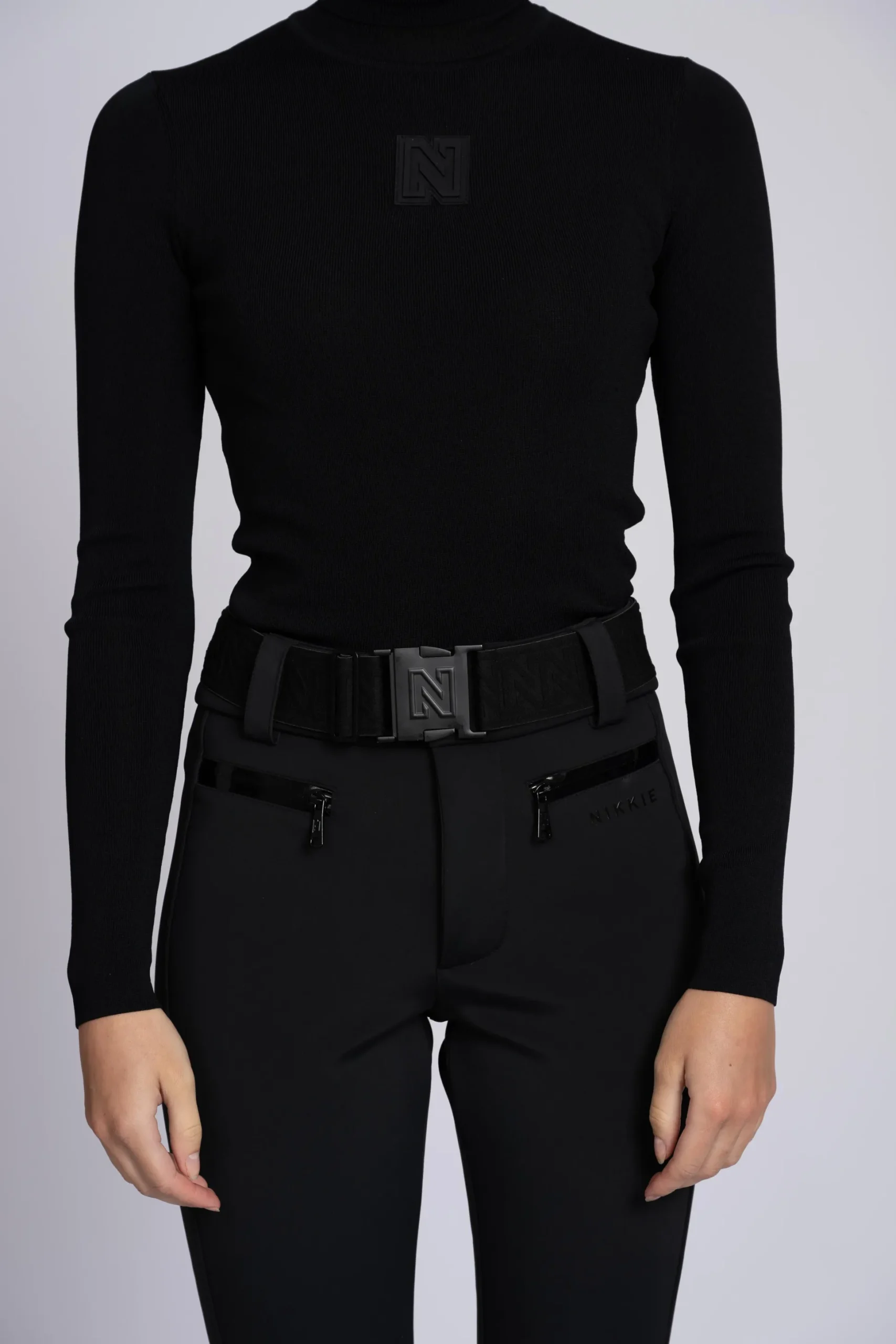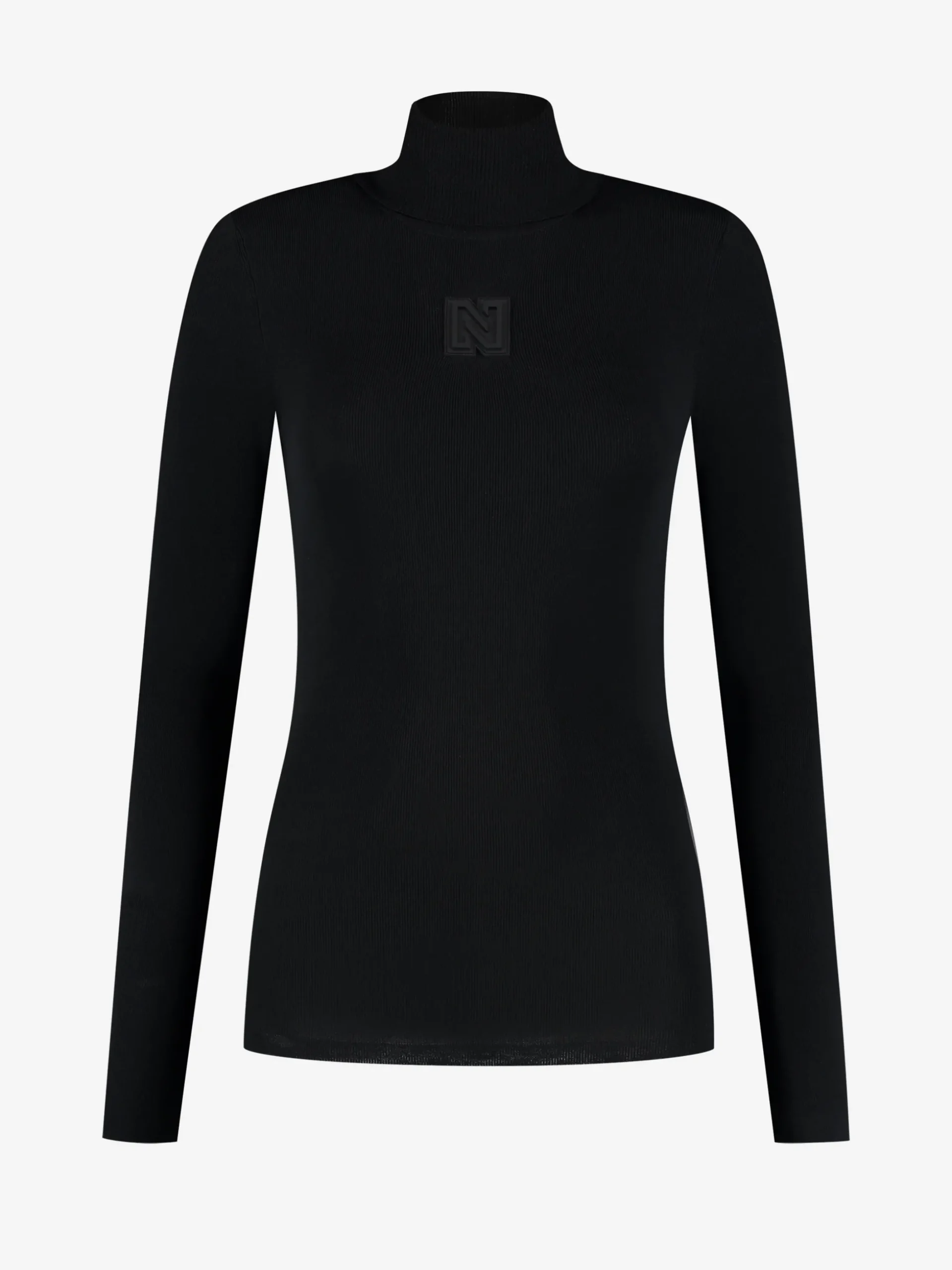 Aansluitende top met een N-logo patch, een hoge col enveel stretch.
