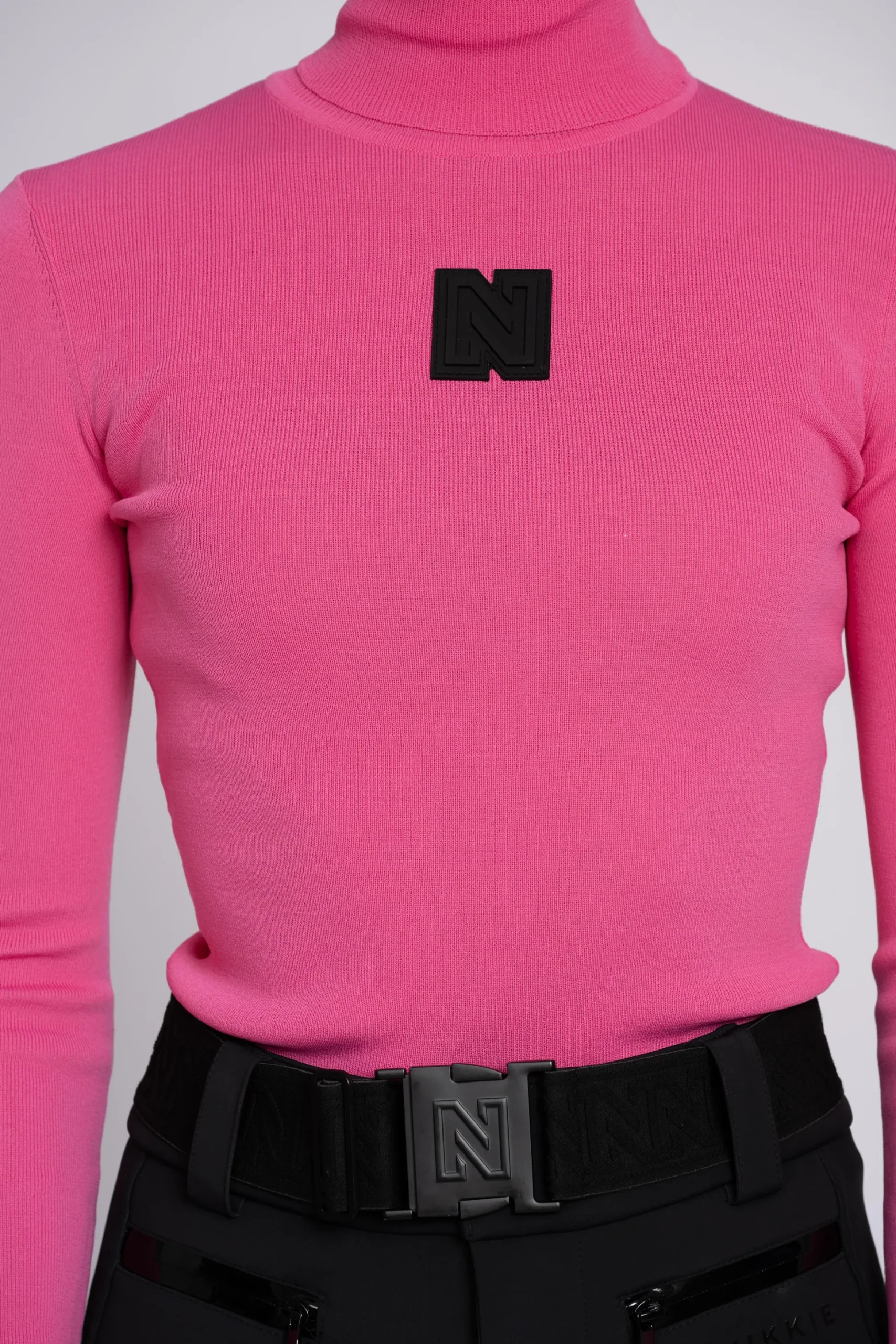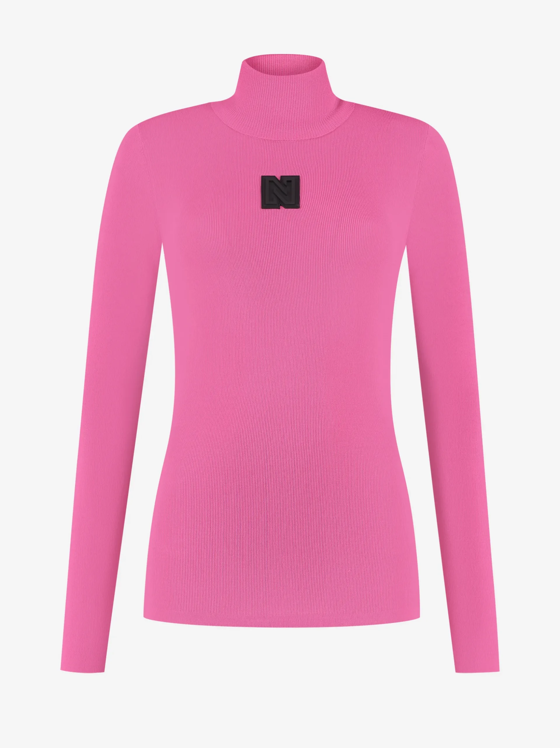 Aansluitende top met een N-logo patch, een hoge col enveel stretch.