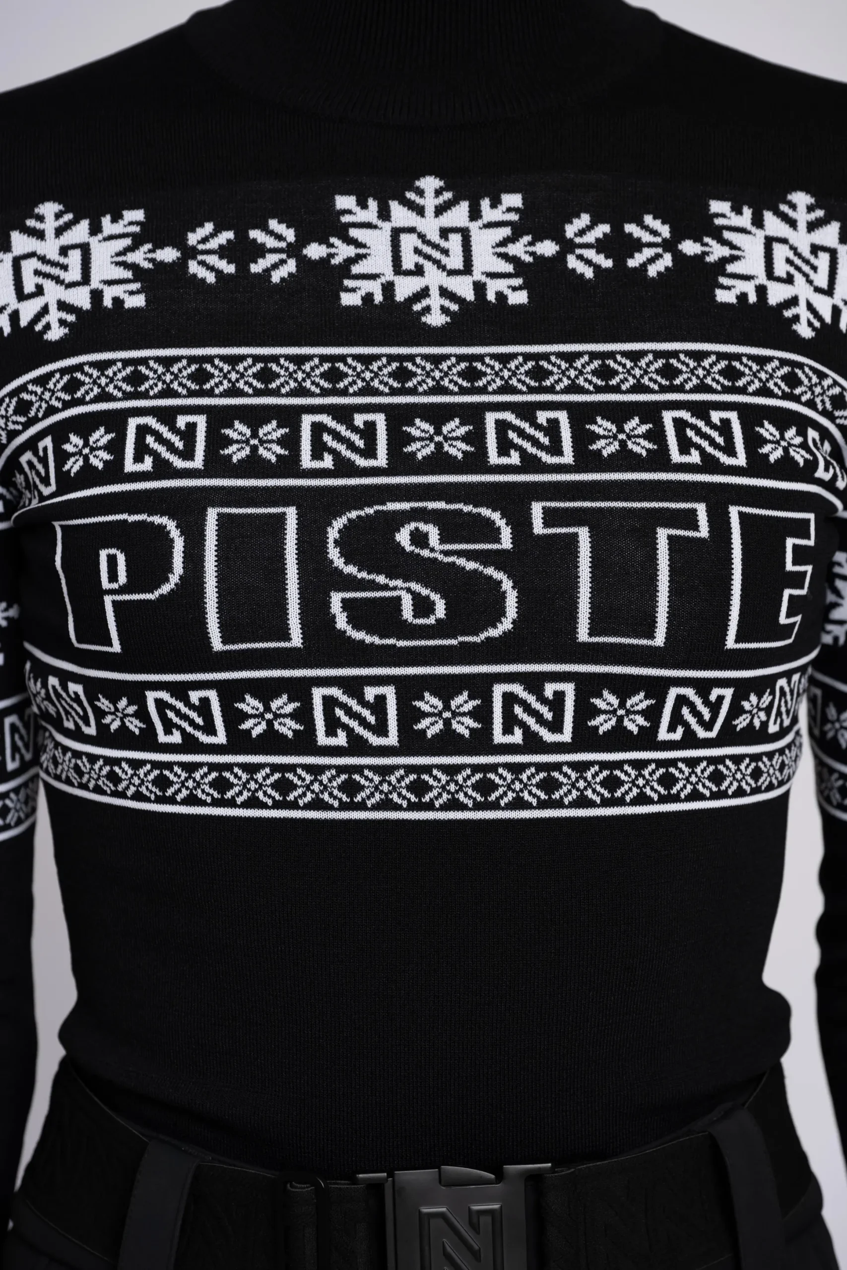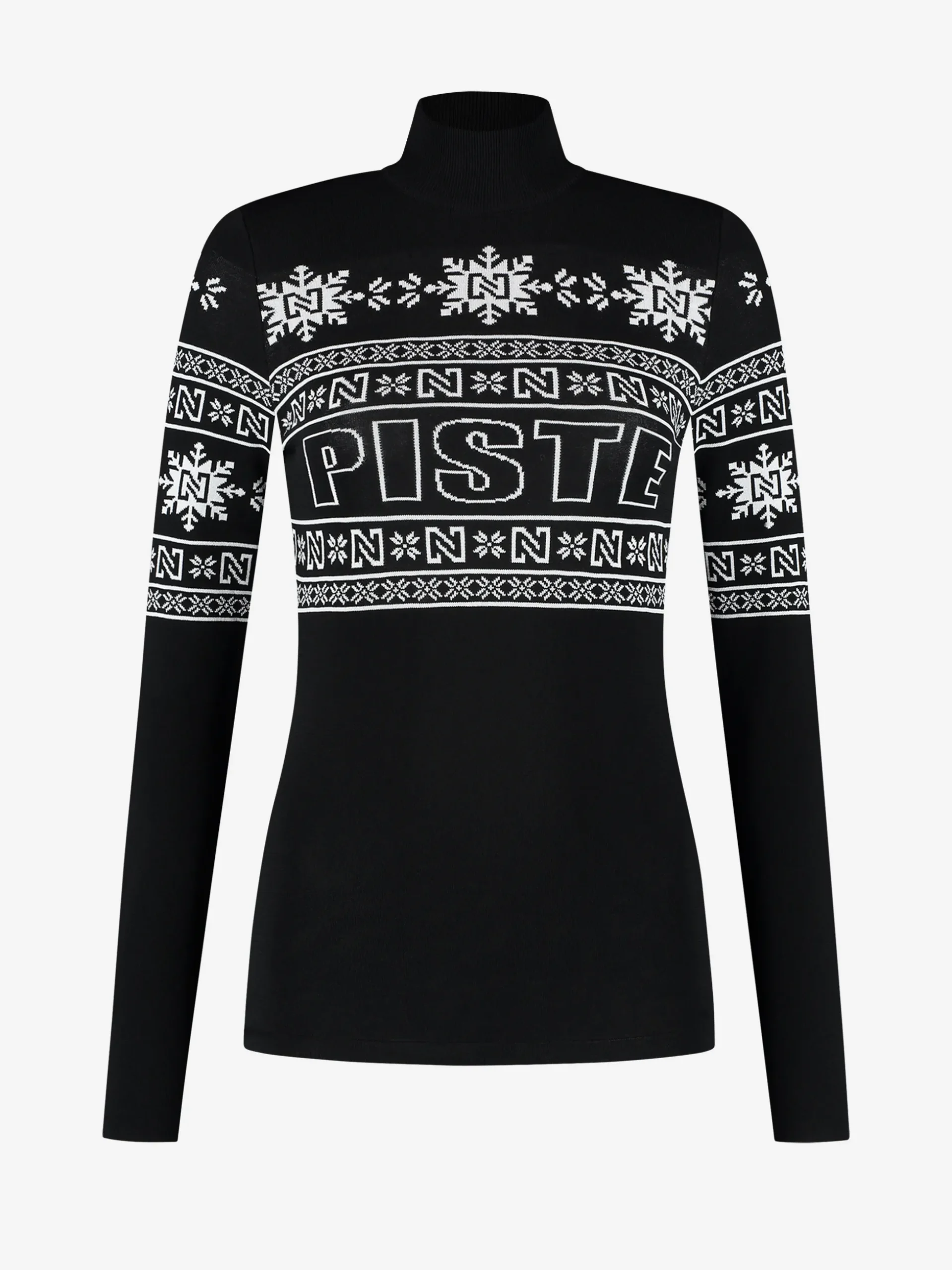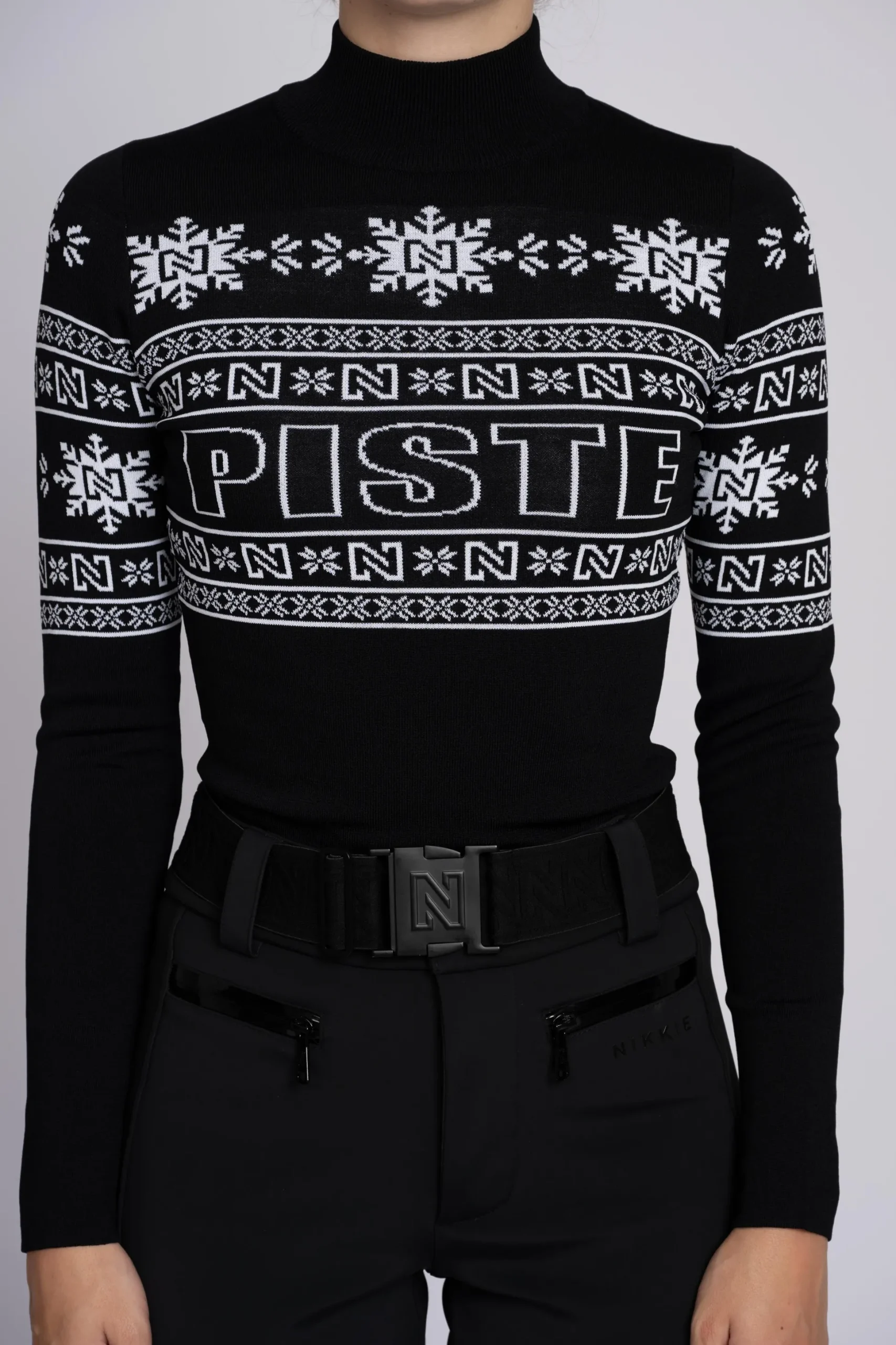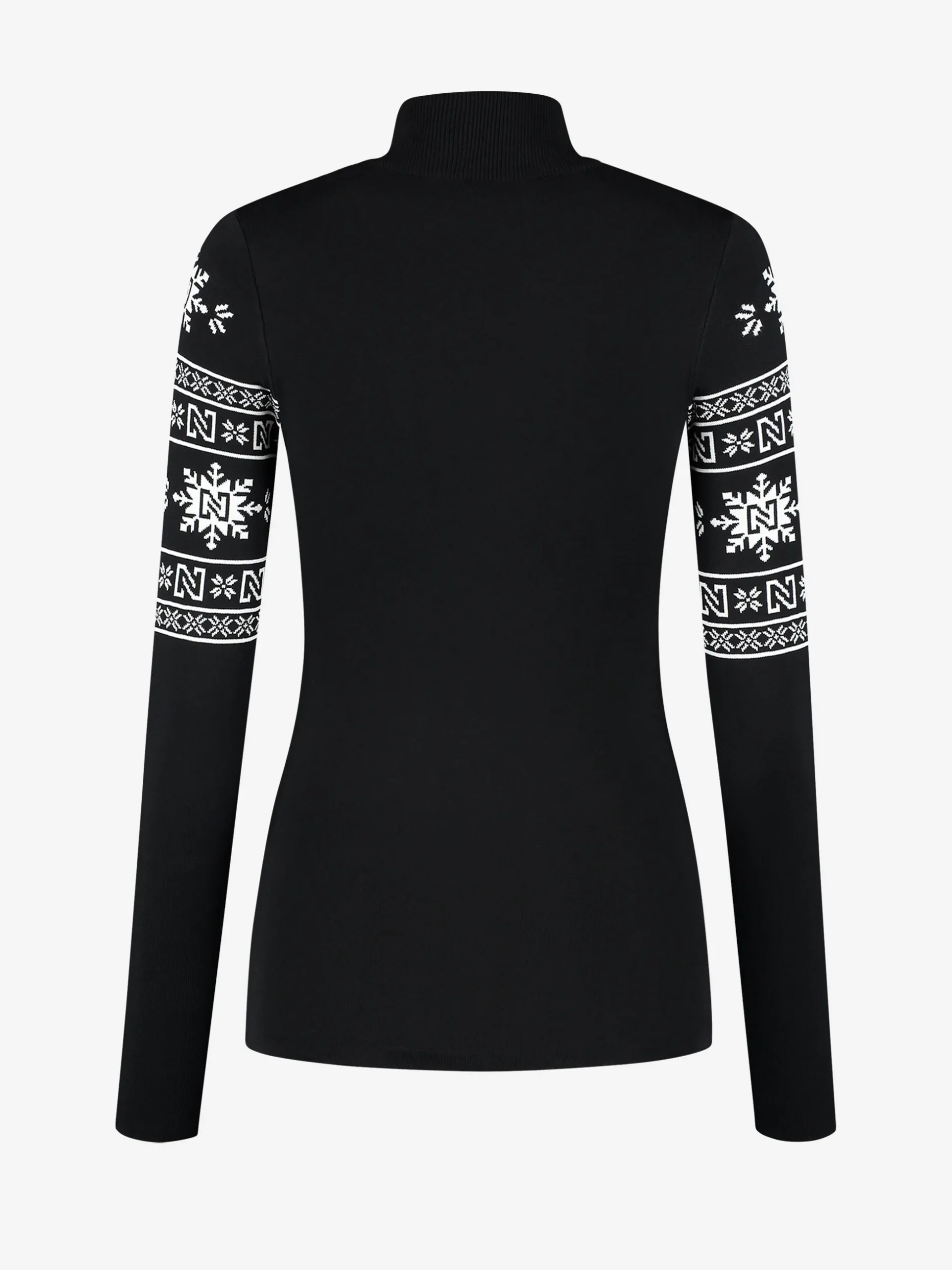 Aansluitende top met een NIKKIE logo patroon, een hogecol en veel stretch.