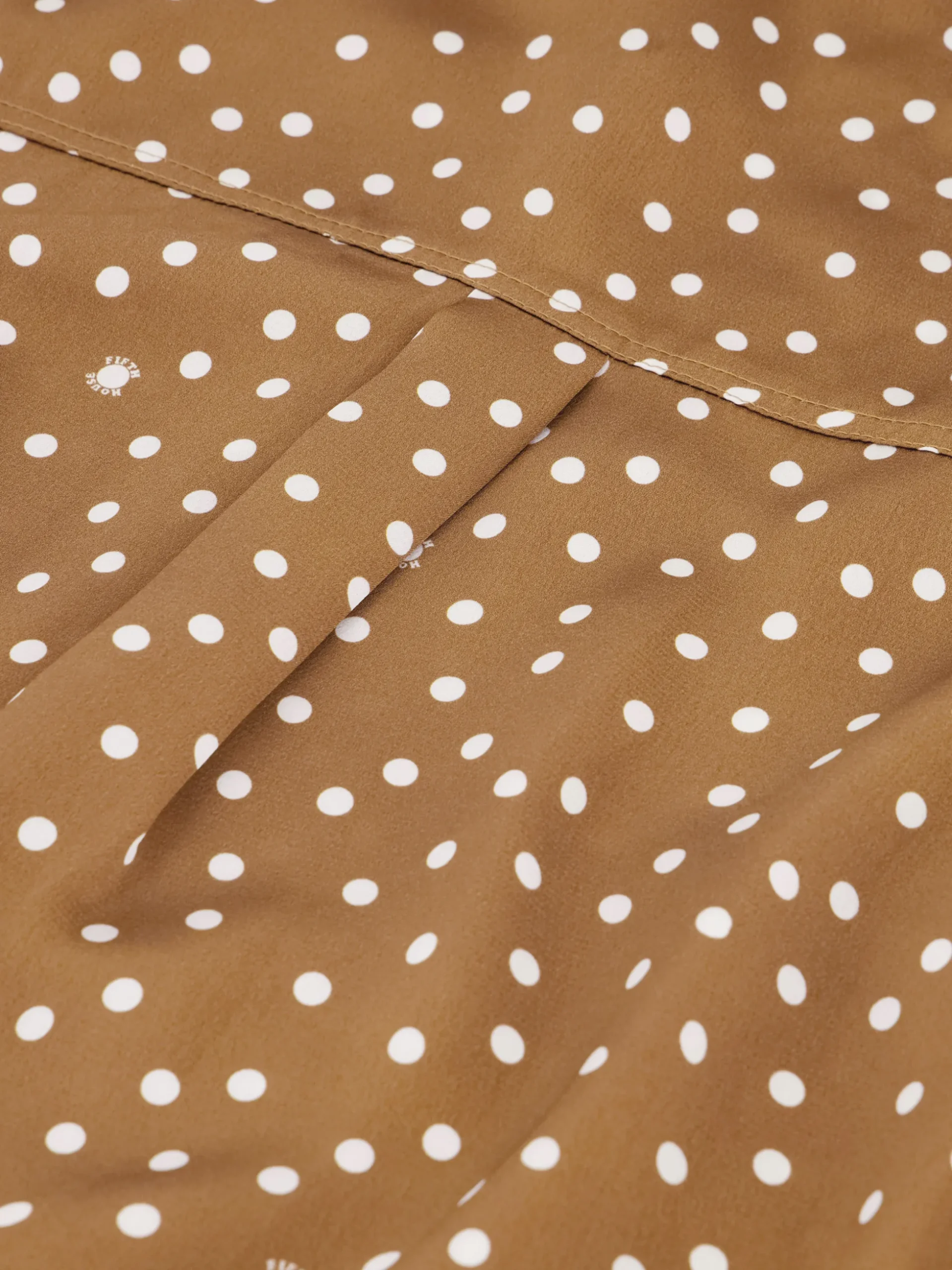 Blouse met stippen en een kraag, waaraan een strikkoord zit. Je kunt de strik zelf losmaken, maar het koord blijft bevestigd aan de blouse. De blouse heeft een rechte pasvorm, een knoopsluiting en bevat geen stretch.