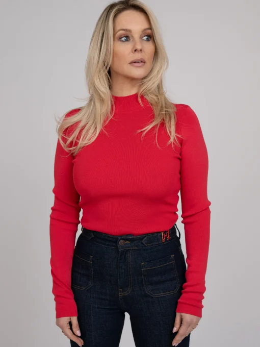 Aansluitende top met een hoog aangesloten col en langemouwen.