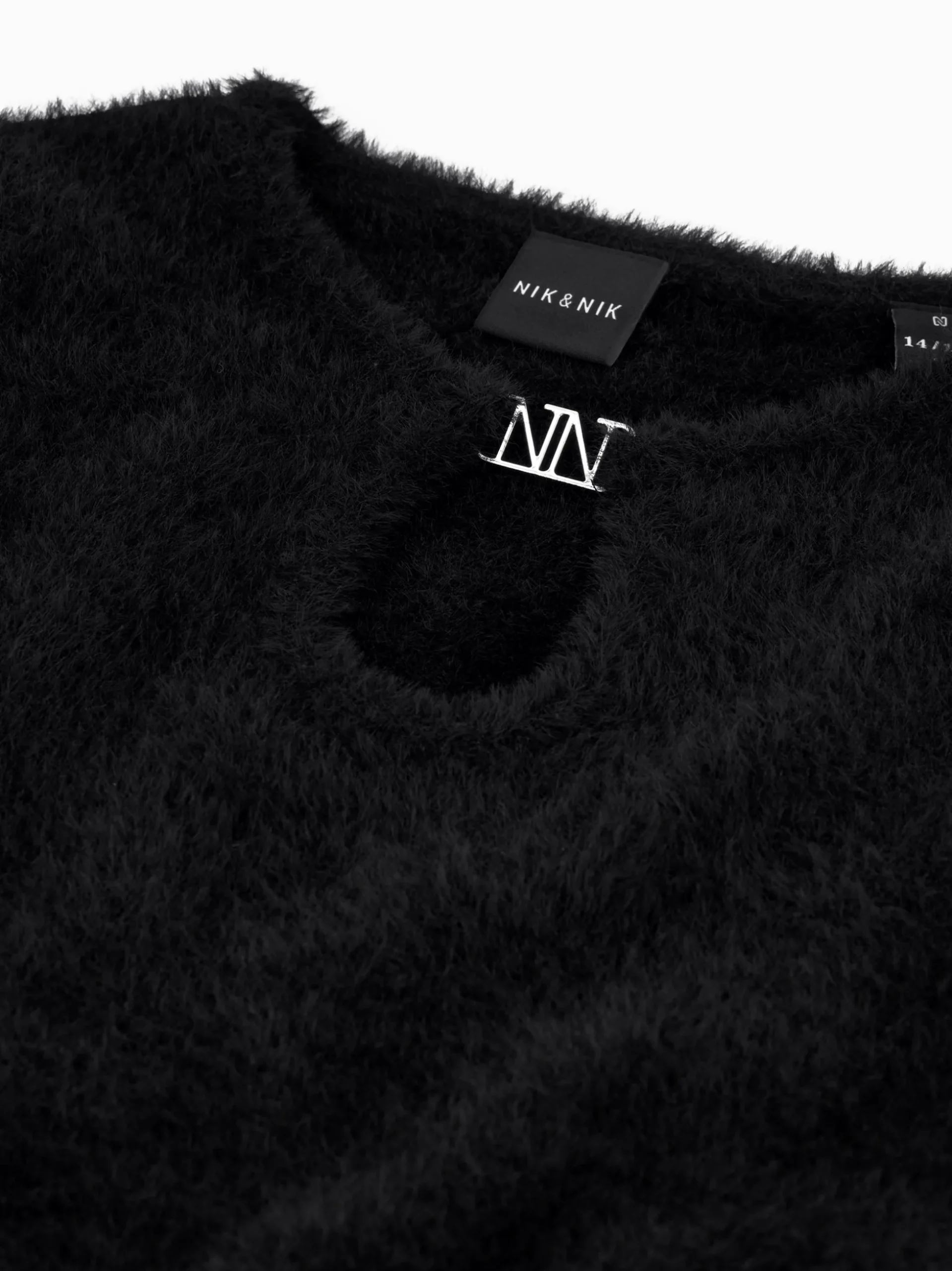 Fluffy trui met een open detail bij de hals en een NIK&NIK logo. De trui heeft een aansluitende pasvorm, een ronde hals en stretch.