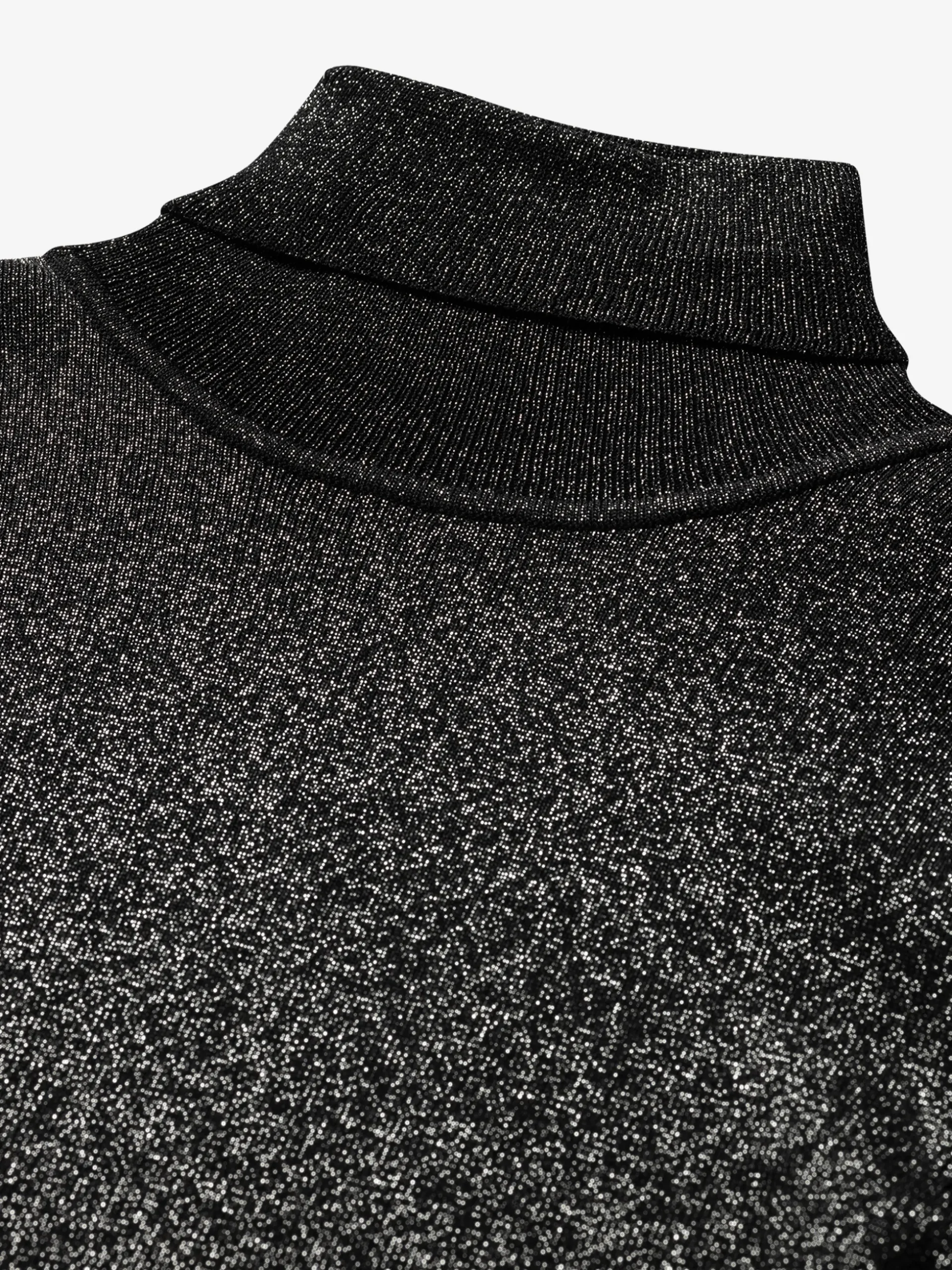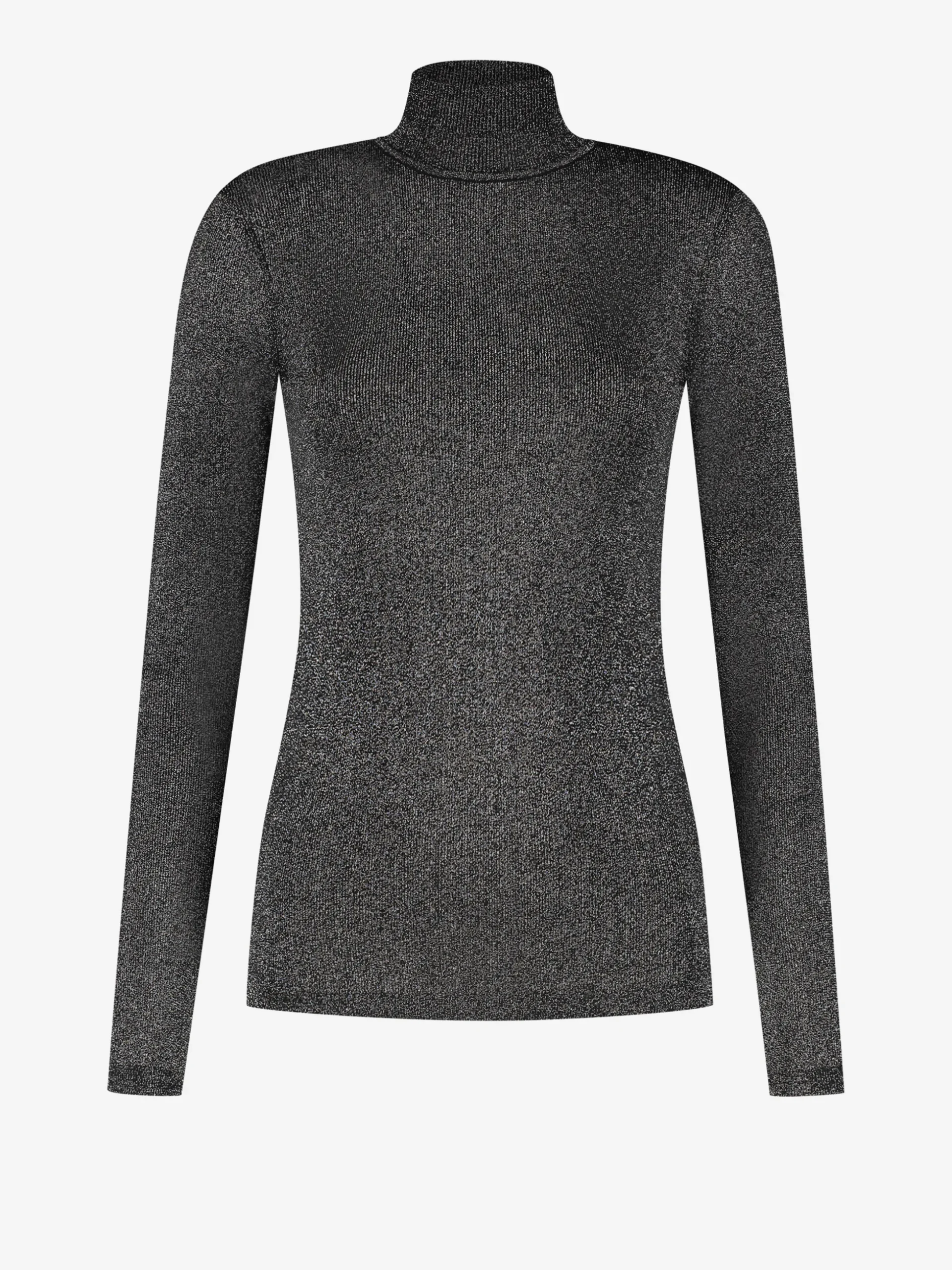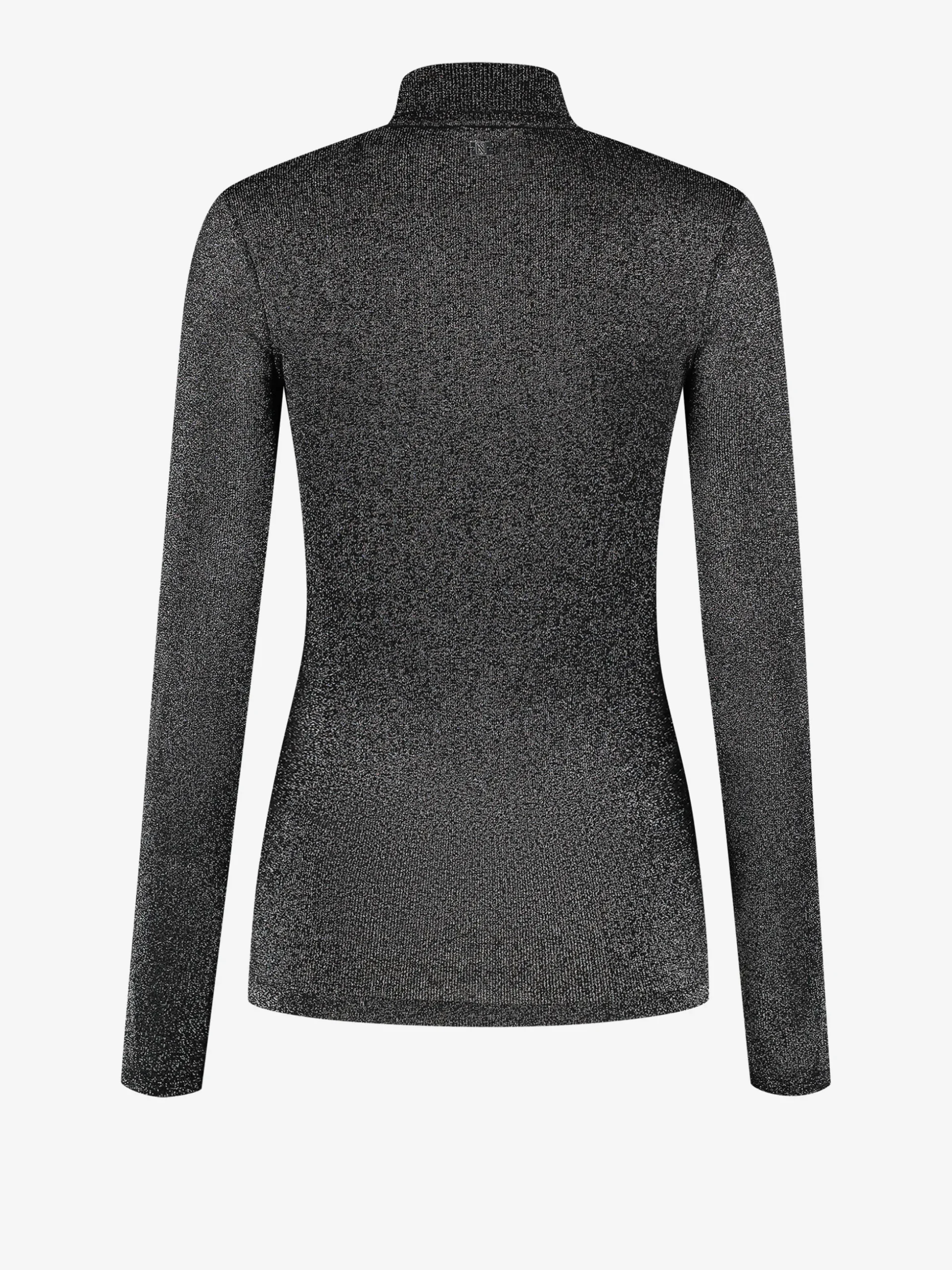 Geribbelde glitter top met een getailleerde pasvorm, een col en stretch.
