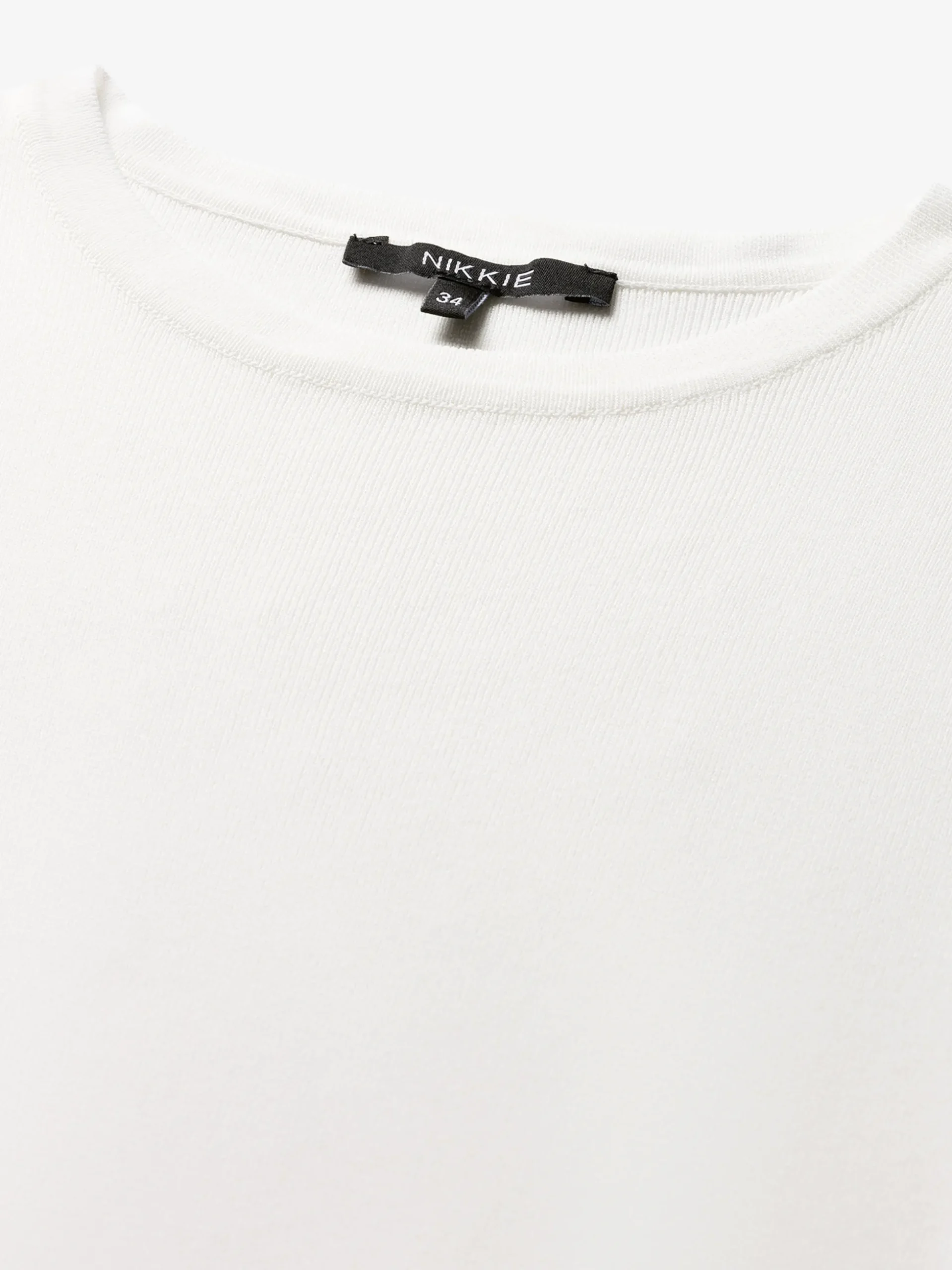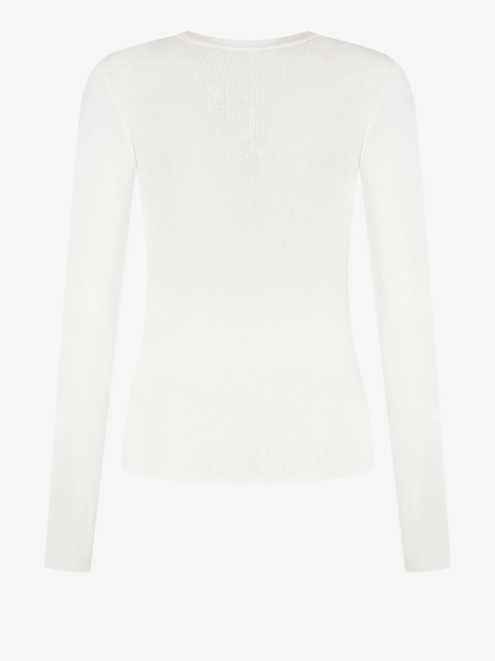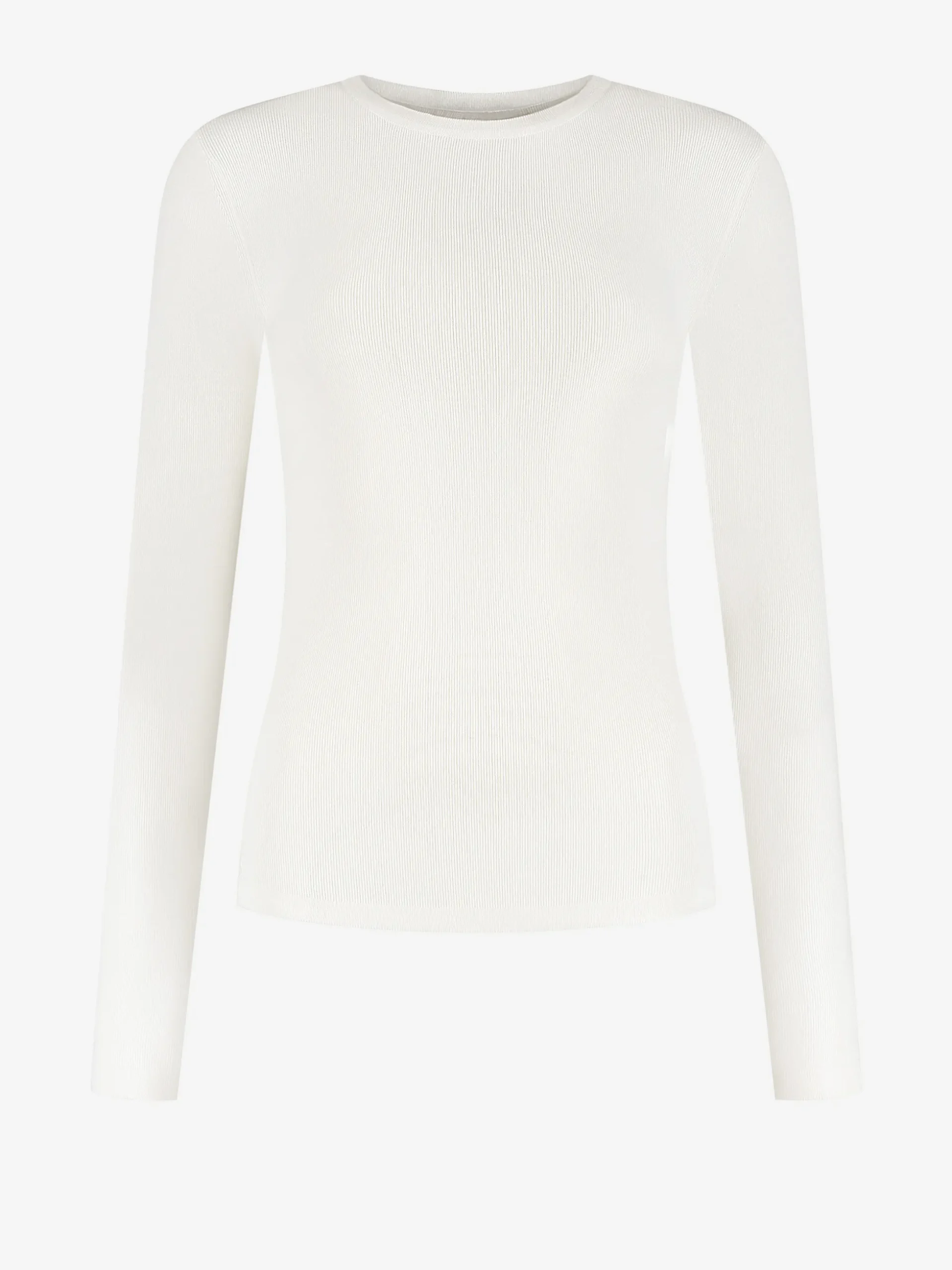 Geribbelde top met een getailleerde pasvorm, rondehalslijn en lange mouwen.