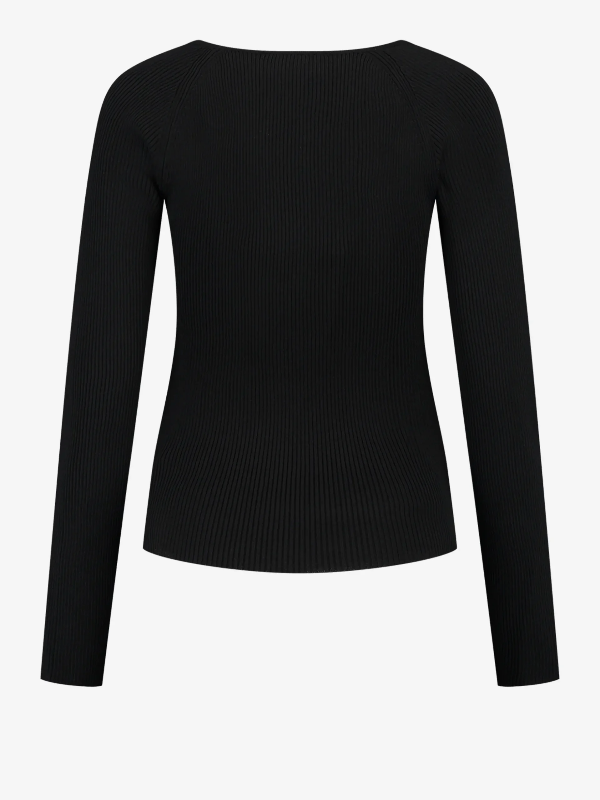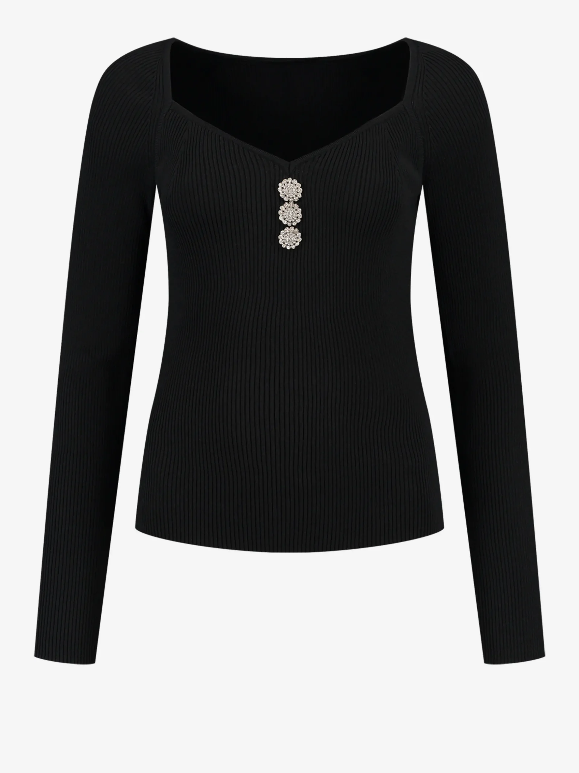 Geribbelde top met een getailleerde pasvorm, eenvierkante hals en sierknopen.