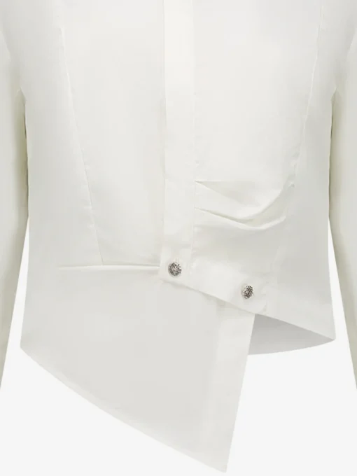 Korte asymmetrische blouse met ballonmouwen,knoopsluiting en kraag, gemaakt van 100% katoen.