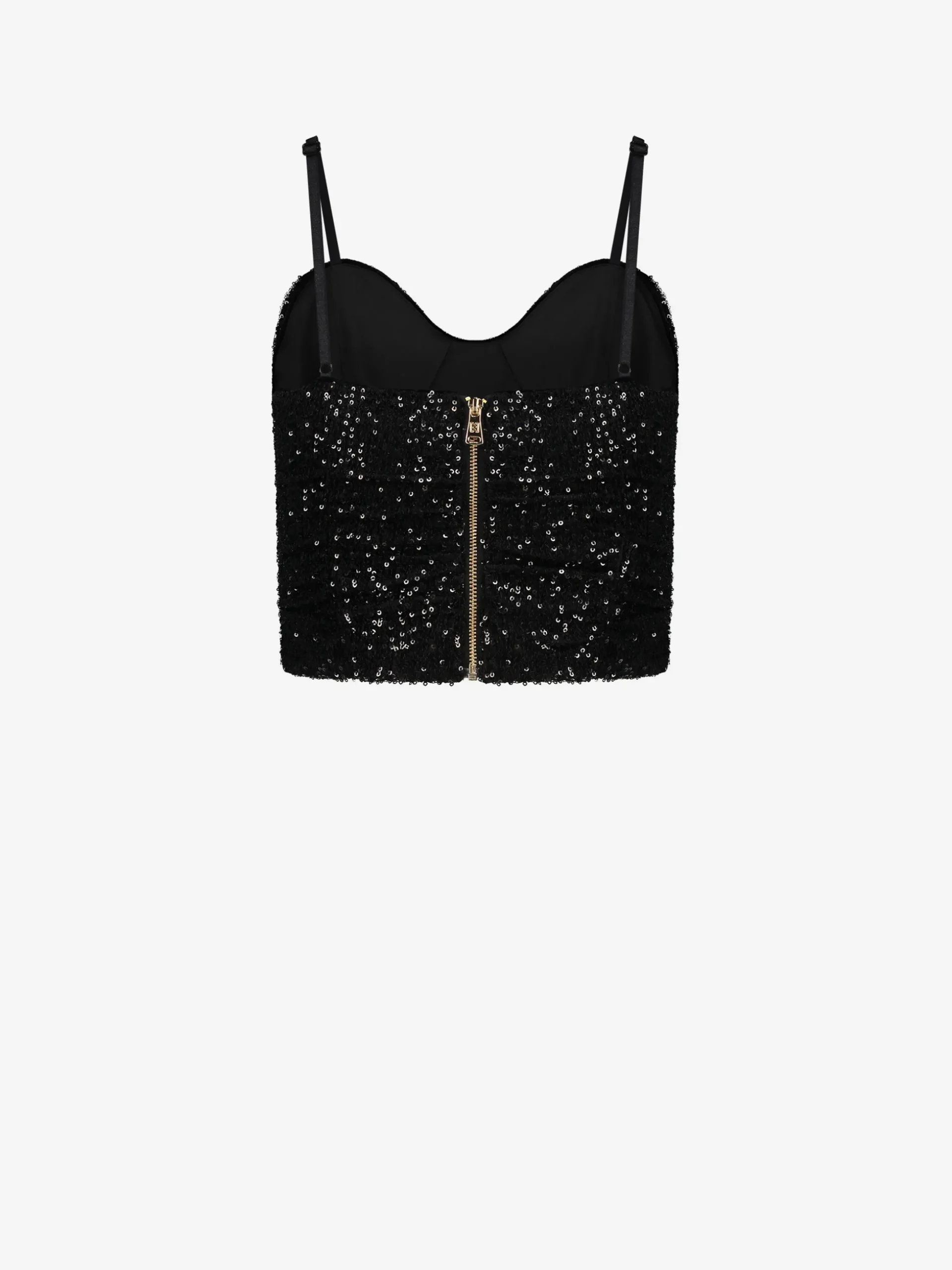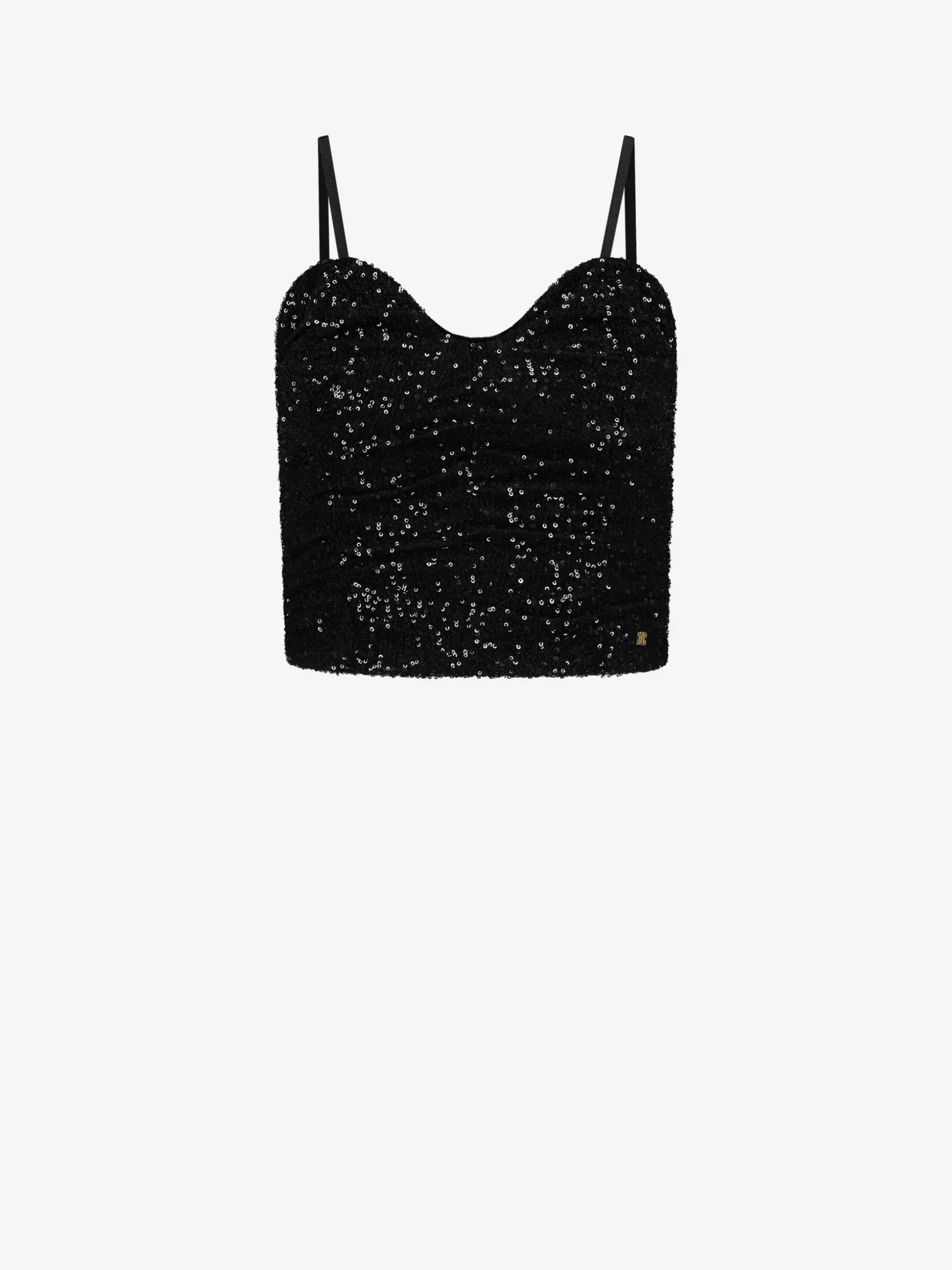 • Top met glitters• Ritssluiting aan de achterkant• Sweetheart halslijn• Straight fit• Spaghettibandjes