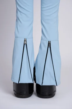 Effen ski broek met een mid waist en rits- enknoopsluiting, voorzien van waterdichte ritsen, sneeuwvangers en verstelbareelastische riem. De broek heeft een flared pasvorm, rubberen beschermendepatches onderaan, en biedt een waterdichtheid van 10.000 mm en ademend vermogenvan 5000 mm.