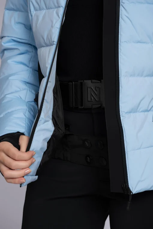 Deze effen ski jas heeft een ritssluiting, elastische NIKKIEriem en capuchon. Het is voorzien van waterdichte ritsen, sneeuwvangers aan de onderkanten mouwen, ritszakken, binnenzakken en een vakje voor een skipas. De jas is waterdichttot 10.000 mm, heeft een ademend vermogen van 3.000 mm, normale pasvorm en geenstretch.