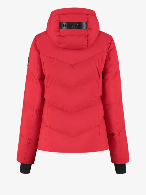 Deze effen ski jas heeft een ritssluiting en eenopstaande kraag met capuchon met het NIKKIE-logo. Voorzien van waterdichteritsen, sneeuwvangers aan de mouwen, ritszakken, binnenzakken, en eenopbergvakje voor een skipas. De jas heeft een waterdichtheidsniveau van 10.000mm en een ademend vermogen van 3.000 mm.
