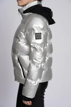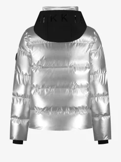 Deze ski jas met metallic look heeft een opstaande kraag,uitvouwbare capuchon en ritssluiting. Hij beschikt over waterdichte ritsen, sneeuwvangersaan de onderkant en mouwen, meerdere zakken en een zakje voor de skipas in demouw. De jas heeft een waterproof level van 10,000 mm en een normale pasvorm.
