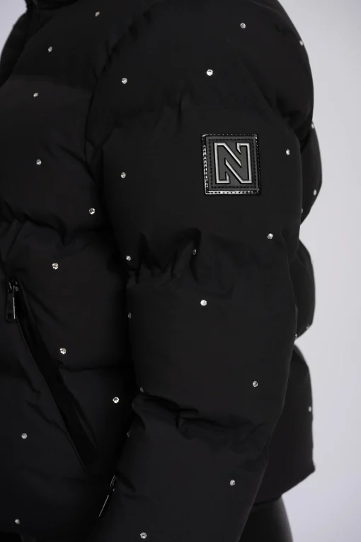 Deze ski jas met all-over Swarovski kristallen heeft eenopstaande kraag, ritssluiting en waterdichte ritsen met logo. Hij is voorzienvan sneeuwvangers aan de onderkant en mouwen, ritszakken, binnenzakken en eenskipasvakje in de mouw. De jas biedt een waterproof level van 5000 mm en eenbreathability level van 3000 mm.