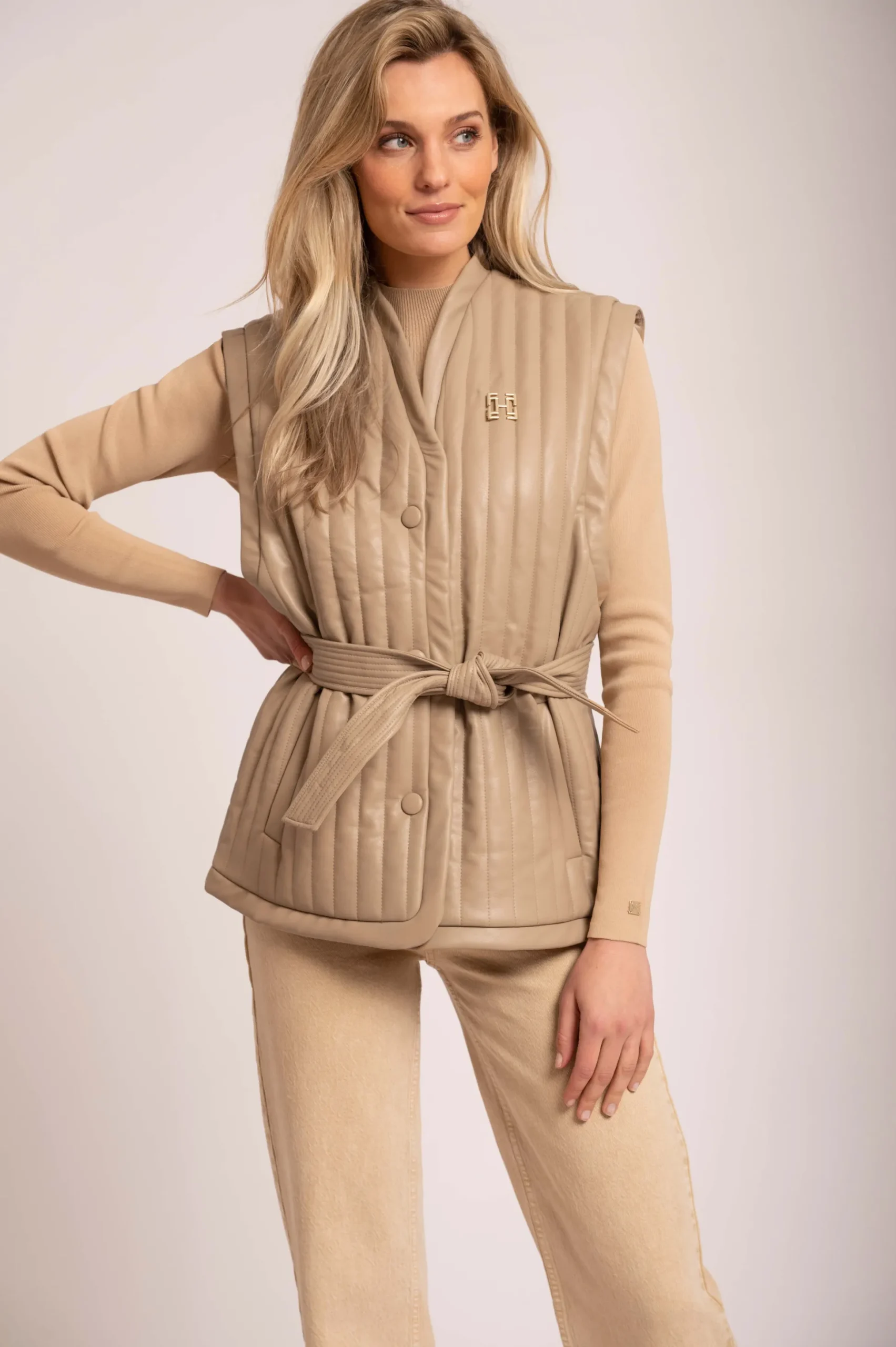 • Vest met leerlook